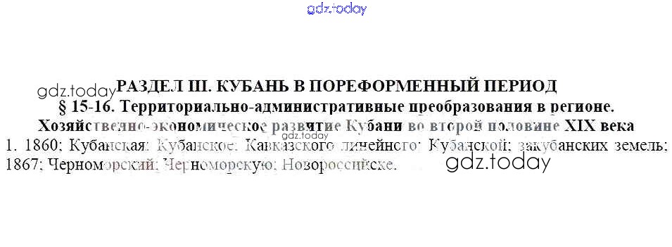 Решение к § 15-16. Территориально-административные преобразования в регионе Хозяйственно-экономическое развитие Кубани во второй половине XIX века