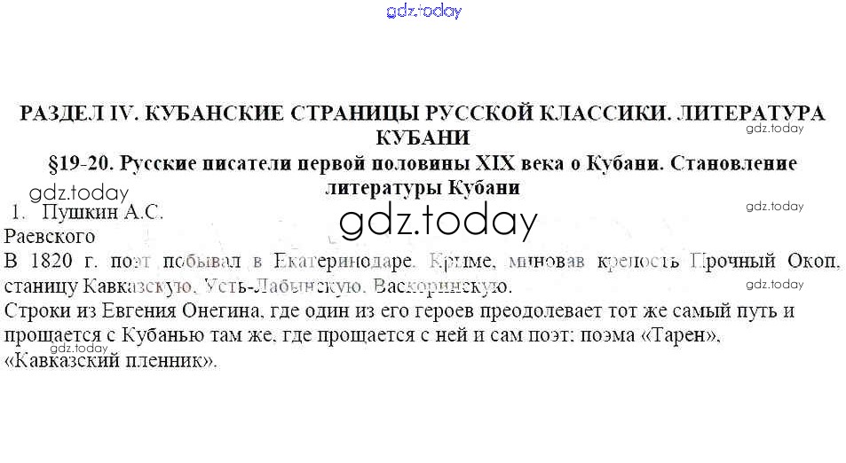 Решение к § 19-20. Русские писатели первой половины XIX века о Кубани. Становление литературы Кубани