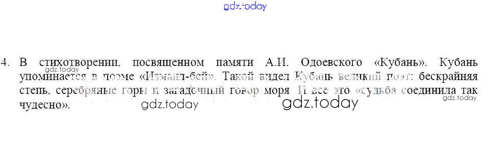 На страницах сайта gdz.today вы найдете учебный и вспомогательный материал, направленный на улучшения знаний школьной программы. ГДЗ - онлайн мир знаний Решение к § 19-20. Русские писатели первой половины XIX века о Кубани. Становление литературы Кубани 4 Рабочей тетради по Кубановедению для 8 класса Гриценко Перспективы образования 2018