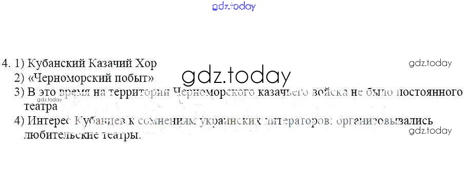 На страницах сайта gdz.today вы найдете учебный и вспомогательный материал, направленный на улучшения знаний школьной программы. ГДЗ - онлайн мир знаний Решение к § 27. Музыкальная и театральная жизнь Кубани в XIX веке 4 Рабочей тетради по Кубановедению для 8 класса Гриценко Перспективы образования 2018