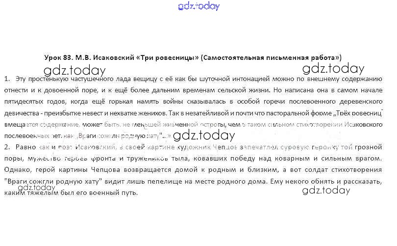 На страницах сайта gdz.today вы найдете учебный и вспомогательный материал, направленный на улучшения знаний школьной программы. ГДЗ - онлайн мир знаний Решение к урокам 83 Рабочей тетради по Литературе для 8 класса Соловьева Русское слово Инновационная школа 2016