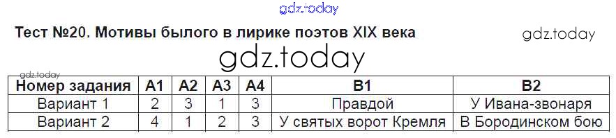 На страницах сайта gdz.today вы найдете учебный и вспомогательный материал, направленный на улучшения знаний школьной программы. ГДЗ - онлайн мир знаний Решение к тестам 20 Контрольно-измерительным материалам (КИМ) по Литературе для 8 класса Зубова ВАКО 2015
