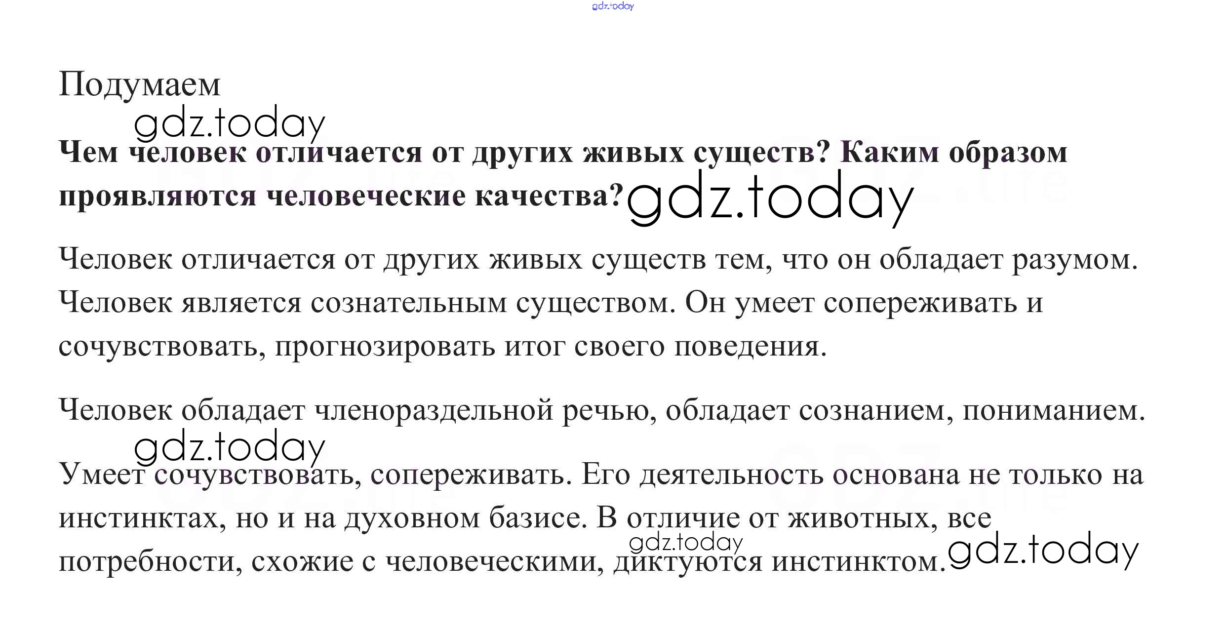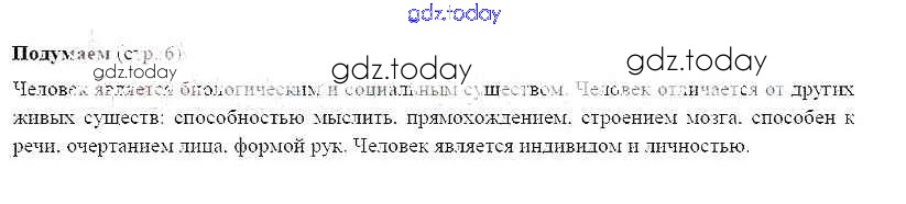 На страницах сайта gdz.today вы найдете учебный и вспомогательный материал, направленный на улучшения знаний школьной программы. ГДЗ - онлайн мир знаний Подумаем §1. Что делает человека человеком 1 Учебнику по Обществознанию для 8 класса Боголюбов, Городецкая Просвещение Академический школьный учебник 2014