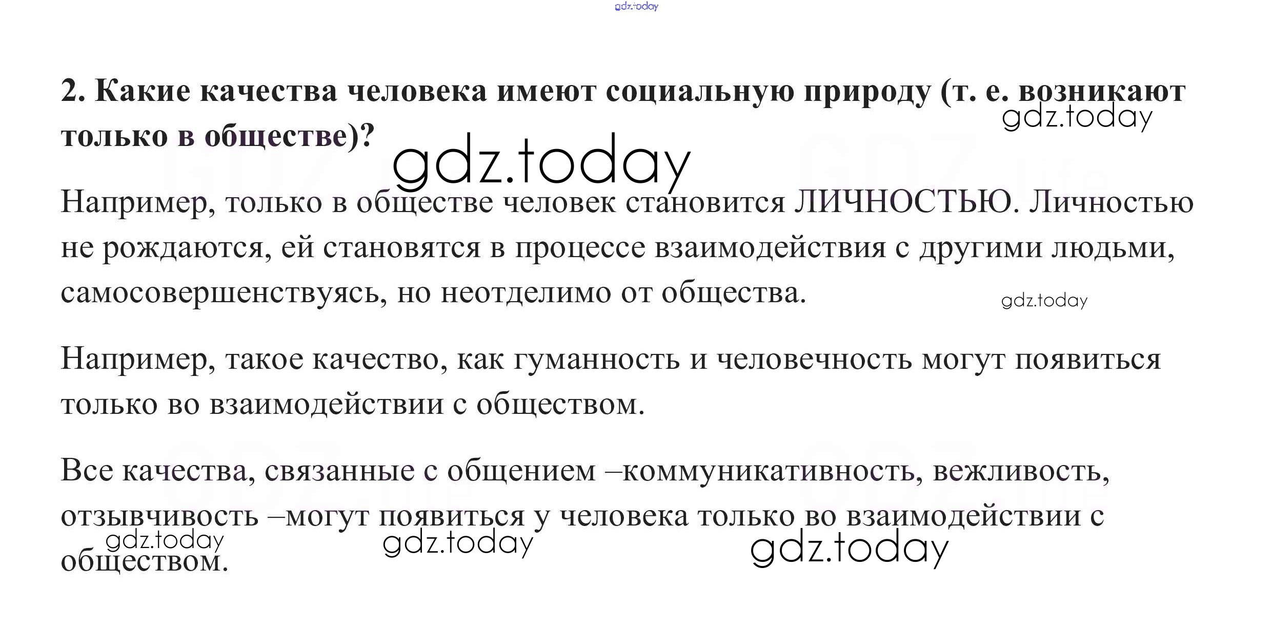 На страницах сайта gdz.today вы найдете учебный и вспомогательный материал, направленный на улучшения знаний школьной программы. ГДЗ - онлайн мир знаний Проверим себя §1. Что делает человека человеком 2 Учебнику по Обществознанию для 8 класса Боголюбов, Городецкая Просвещение Академический школьный учебник 2014