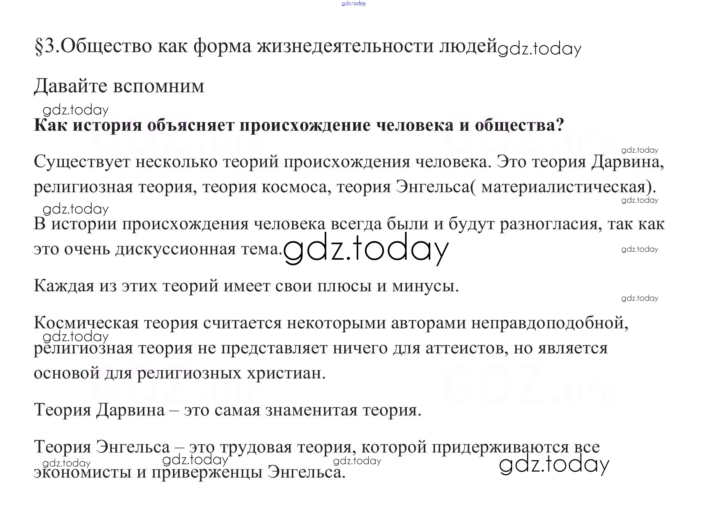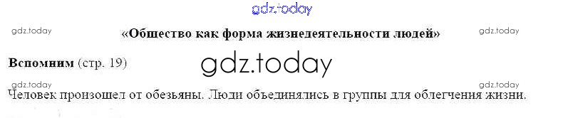 На страницах сайта gdz.today вы найдете учебный и вспомогательный материал, направленный на улучшения знаний школьной программы. ГДЗ - онлайн мир знаний Вспомним §3. Общество как форма жизнедеятельности людей 1 Учебнику по Обществознанию для 8 класса Боголюбов, Городецкая Просвещение Академический школьный учебник 2014