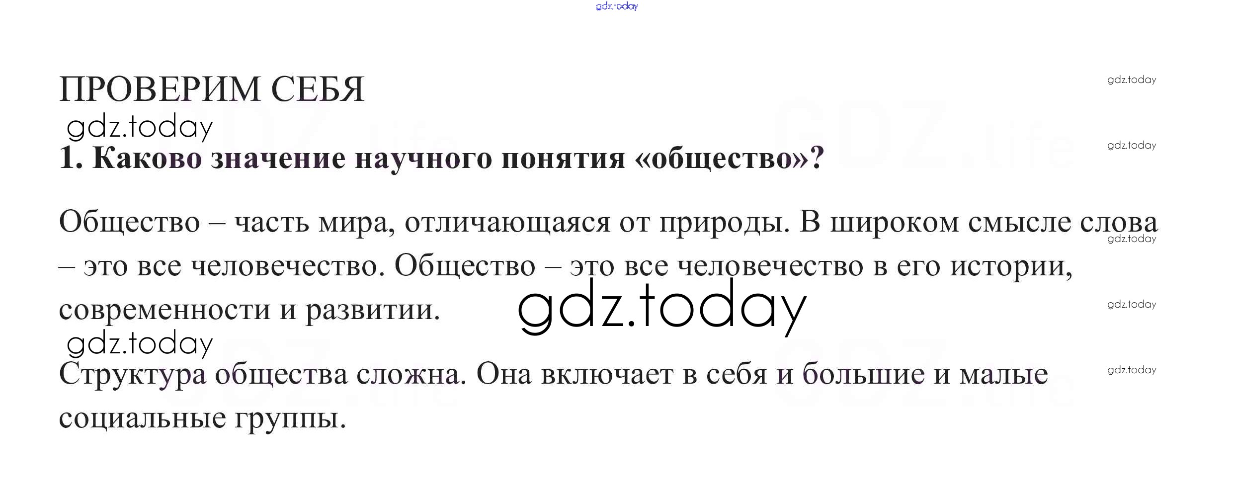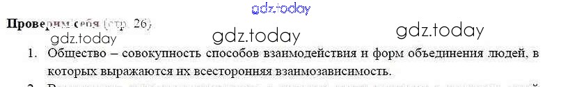 На страницах сайта gdz.today вы найдете учебный и вспомогательный материал, направленный на улучшения знаний школьной программы. ГДЗ - онлайн мир знаний Проверим себя §3. Общество как форма жизнедеятельности людей 1 Учебнику по Обществознанию для 8 класса Боголюбов, Городецкая Просвещение Академический школьный учебник 2014