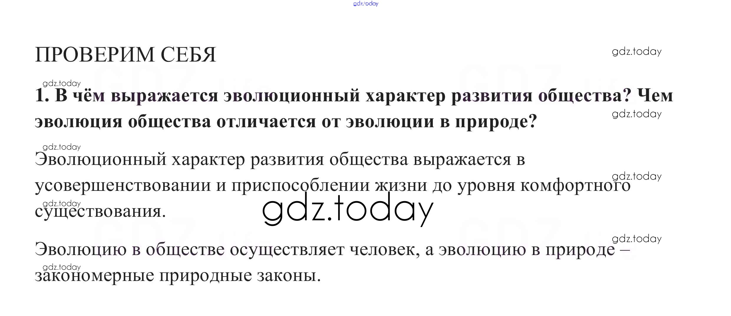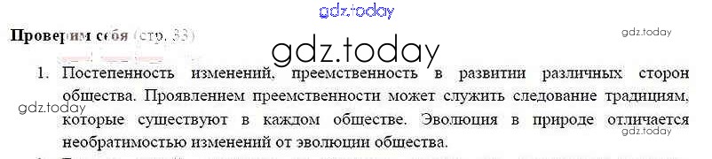 На страницах сайта gdz.today вы найдете учебный и вспомогательный материал, направленный на улучшения знаний школьной программы. ГДЗ - онлайн мир знаний Проверим себя §4. Развитие общества 1 Учебнику по Обществознанию для 8 класса Боголюбов, Городецкая Просвещение Академический школьный учебник 2014
