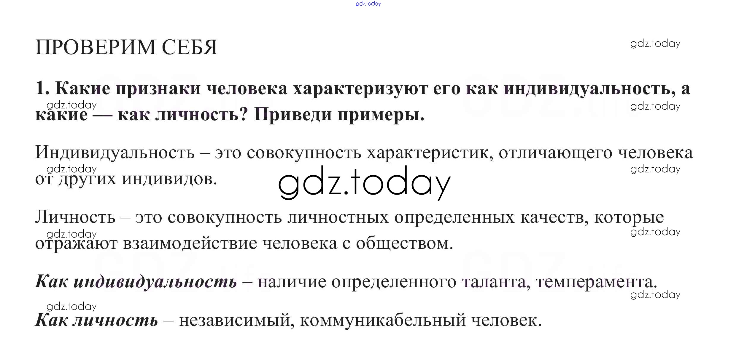 На страницах сайта gdz.today вы найдете учебный и вспомогательный материал, направленный на улучшения знаний школьной программы. ГДЗ - онлайн мир знаний Проверим себя §5. Как стать личностью 1 Учебнику по Обществознанию для 8 класса Боголюбов, Городецкая Просвещение Академический школьный учебник 2014