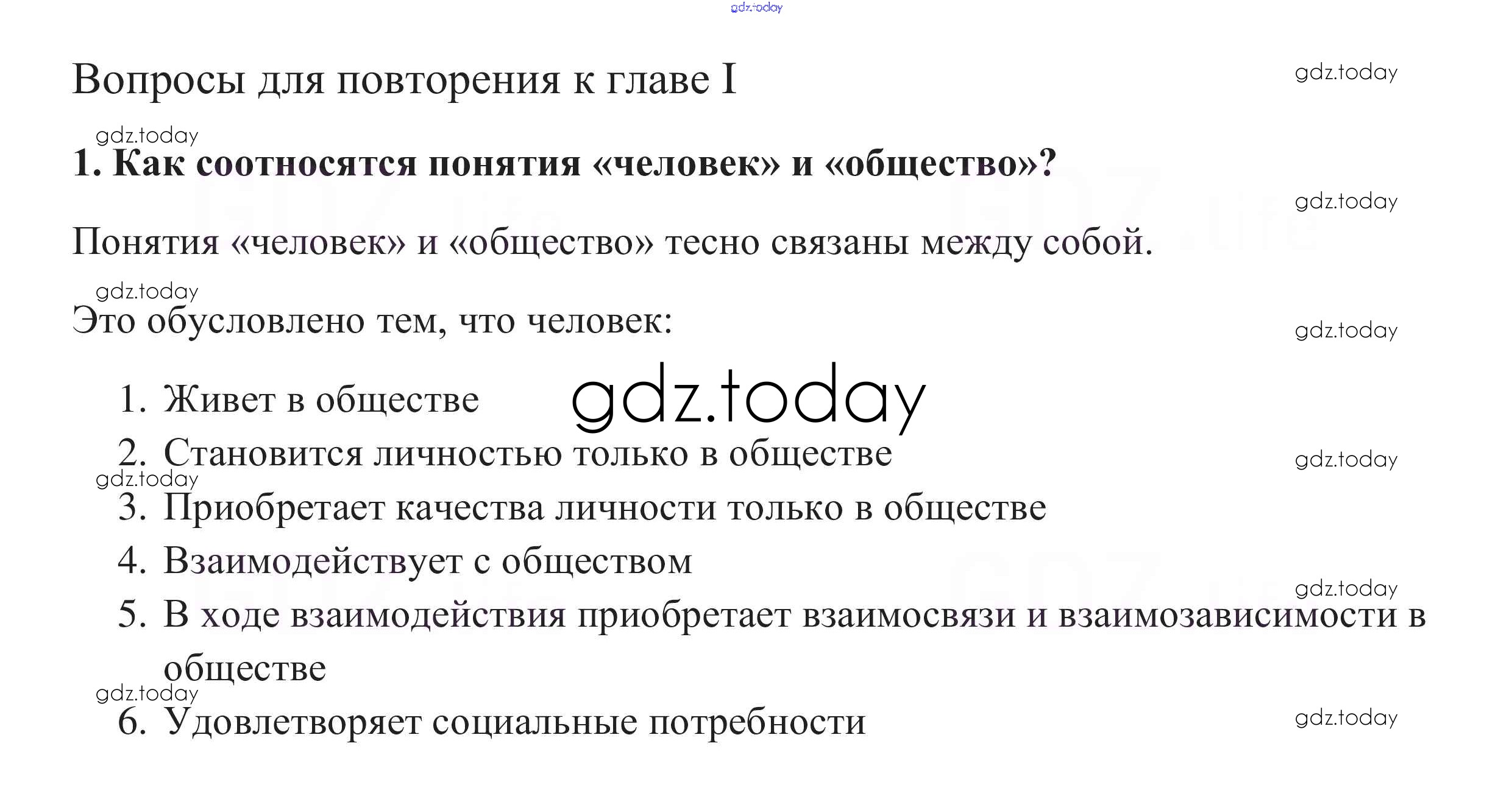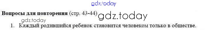 Ответы к Вопросы для повторения страница 43 Решение к главе 1. Личность и общество 1 Учебнику по Обществознанию для 8 класса Боголюбов, Городецкая Просвещение Академический школьный учебник 2014