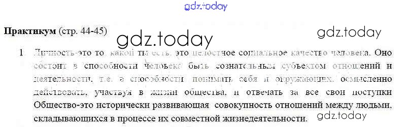Ответы к Практикум к главе 1 страница 44 Решение к главе 1. Личность и общество 1 Учебнику по Обществознанию для 8 класса Боголюбов, Городецкая Просвещение Академический школьный учебник 2014