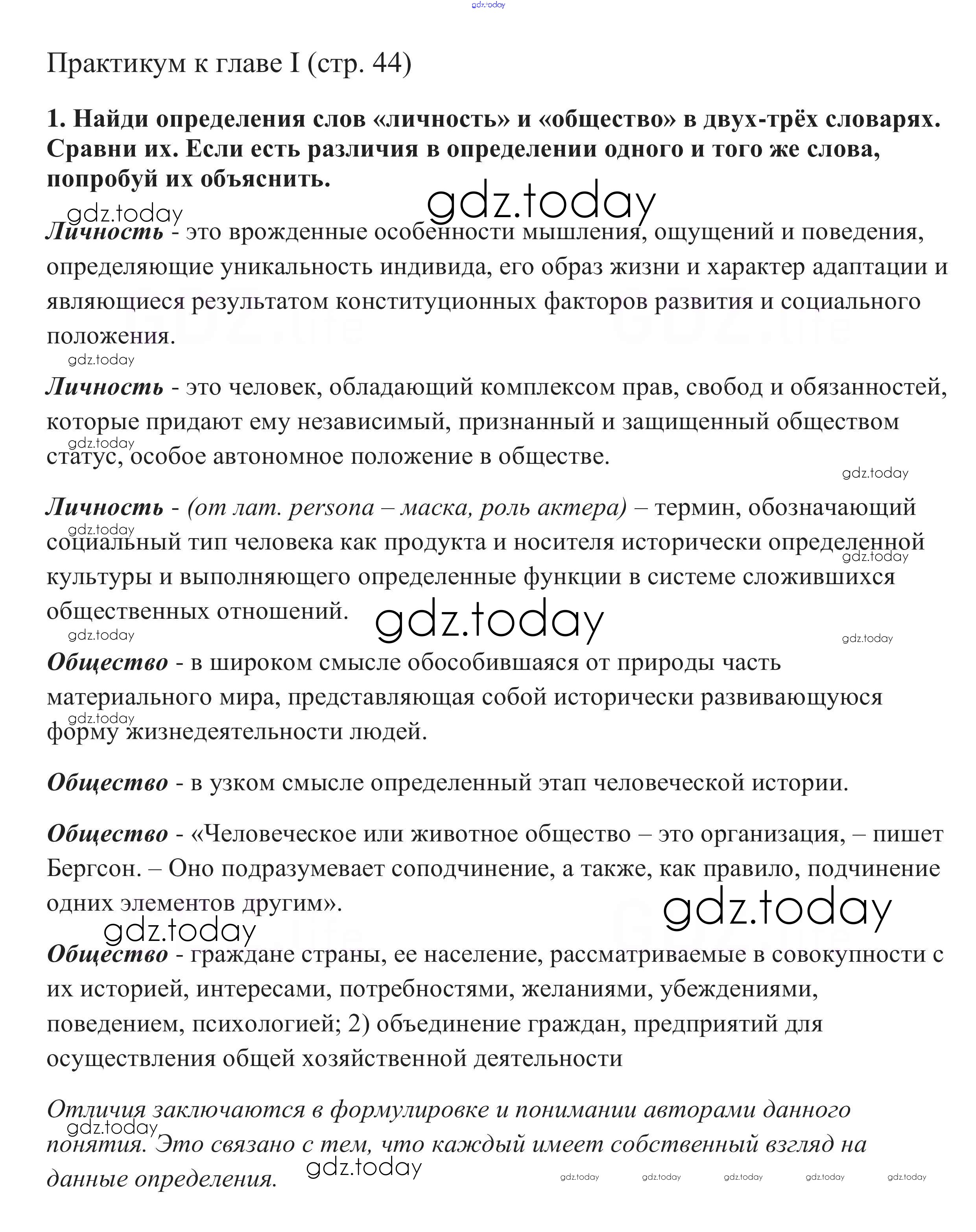 На страницах сайта gdz.today вы найдете учебный и вспомогательный материал, направленный на улучшения знаний школьной программы. ГДЗ - онлайн мир знаний Практикум к главе 1 страница 44 Решение к главе 1. Личность и общество 1 Учебнику по Обществознанию для 8 класса Боголюбов, Городецкая Просвещение Академический школьный учебник 2014