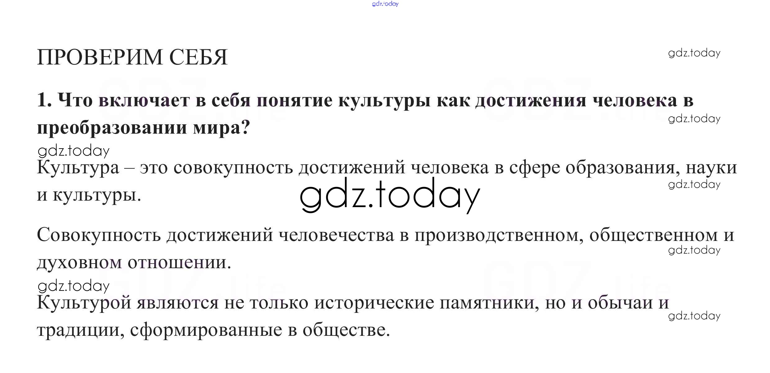 На страницах сайта gdz.today вы найдете учебный и вспомогательный материал, направленный на улучшения знаний школьной программы. ГДЗ - онлайн мир знаний Проверим себя §6. Сфера духовной жизни 1 Учебнику по Обществознанию для 8 класса Боголюбов, Городецкая Просвещение Академический школьный учебник 2014