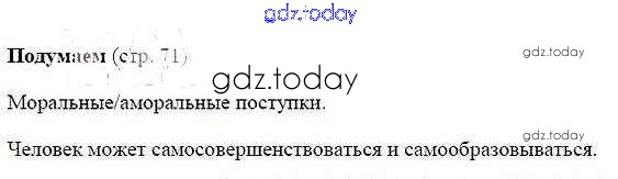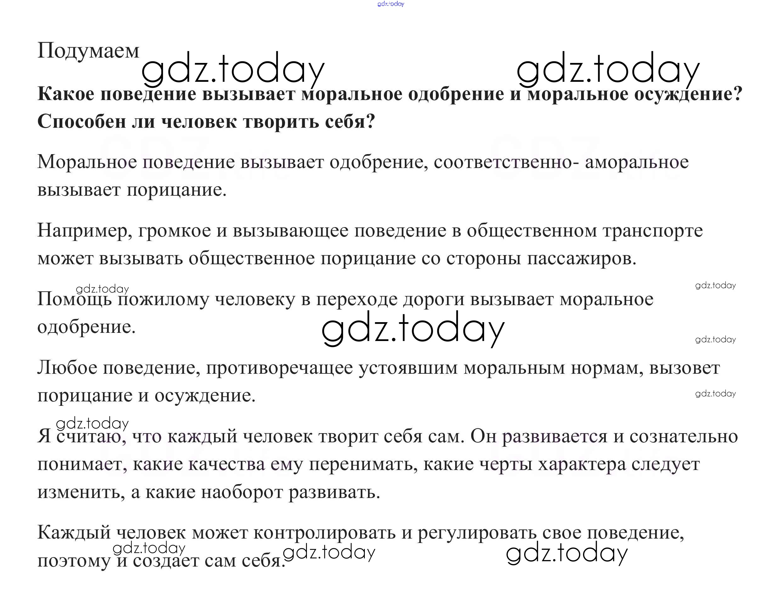 На страницах сайта gdz.today вы найдете учебный и вспомогательный материал, направленный на улучшения знаний школьной программы. ГДЗ - онлайн мир знаний Подумаем §9. Моральный выбор - это ответственность 1 Учебнику по Обществознанию для 8 класса Боголюбов, Городецкая Просвещение Академический школьный учебник 2014