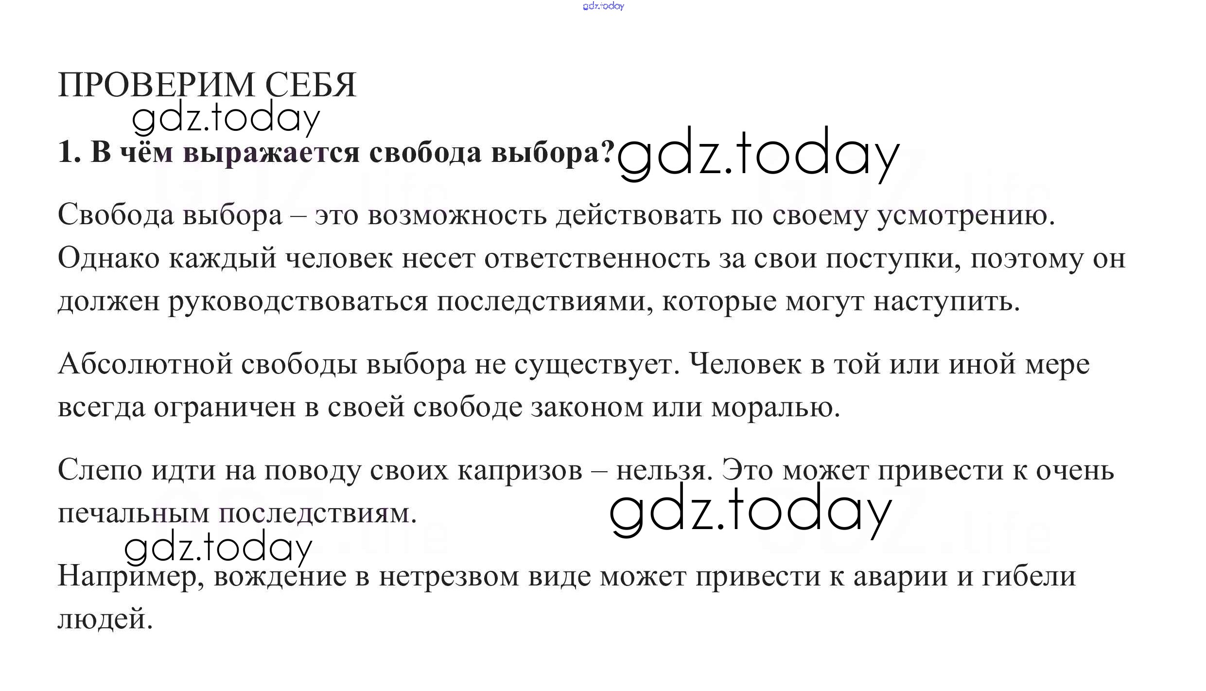 На страницах сайта gdz.today вы найдете учебный и вспомогательный материал, направленный на улучшения знаний школьной программы. ГДЗ - онлайн мир знаний Проверим себя §9. Моральный выбор - это ответственность 1 Учебнику по Обществознанию для 8 класса Боголюбов, Городецкая Просвещение Академический школьный учебник 2014
