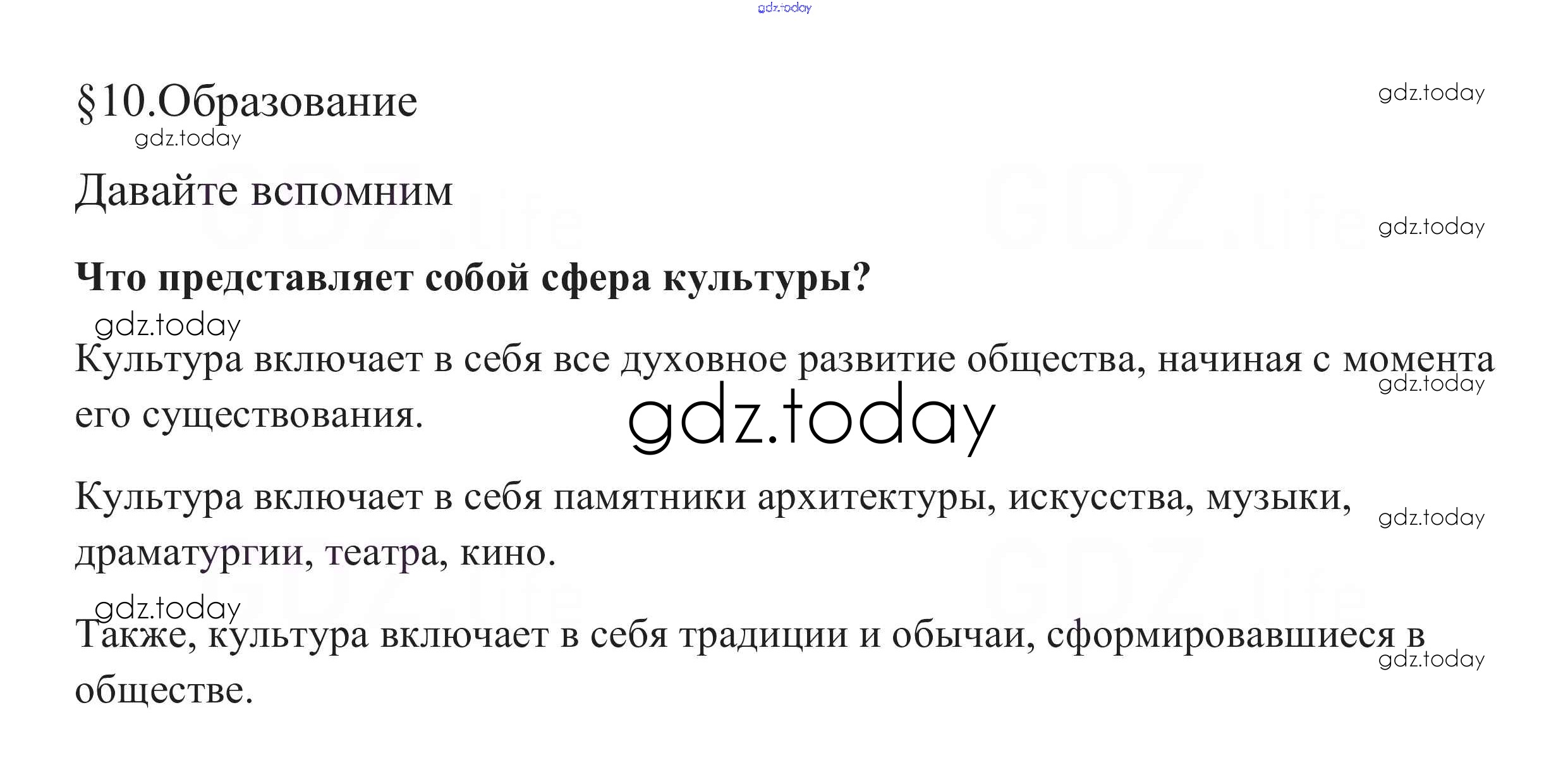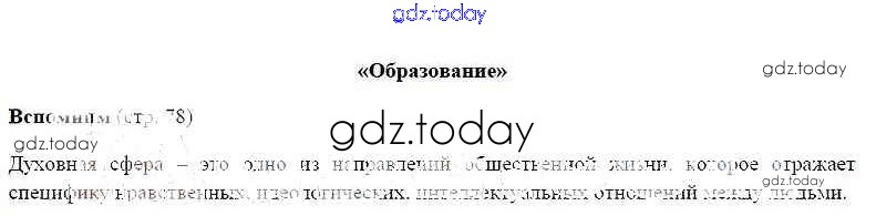 На страницах сайта gdz.today вы найдете учебный и вспомогательный материал, направленный на улучшения знаний школьной программы. ГДЗ - онлайн мир знаний Вспомним §10. Образование 1 Учебнику по Обществознанию для 8 класса Боголюбов, Городецкая Просвещение Академический школьный учебник 2014