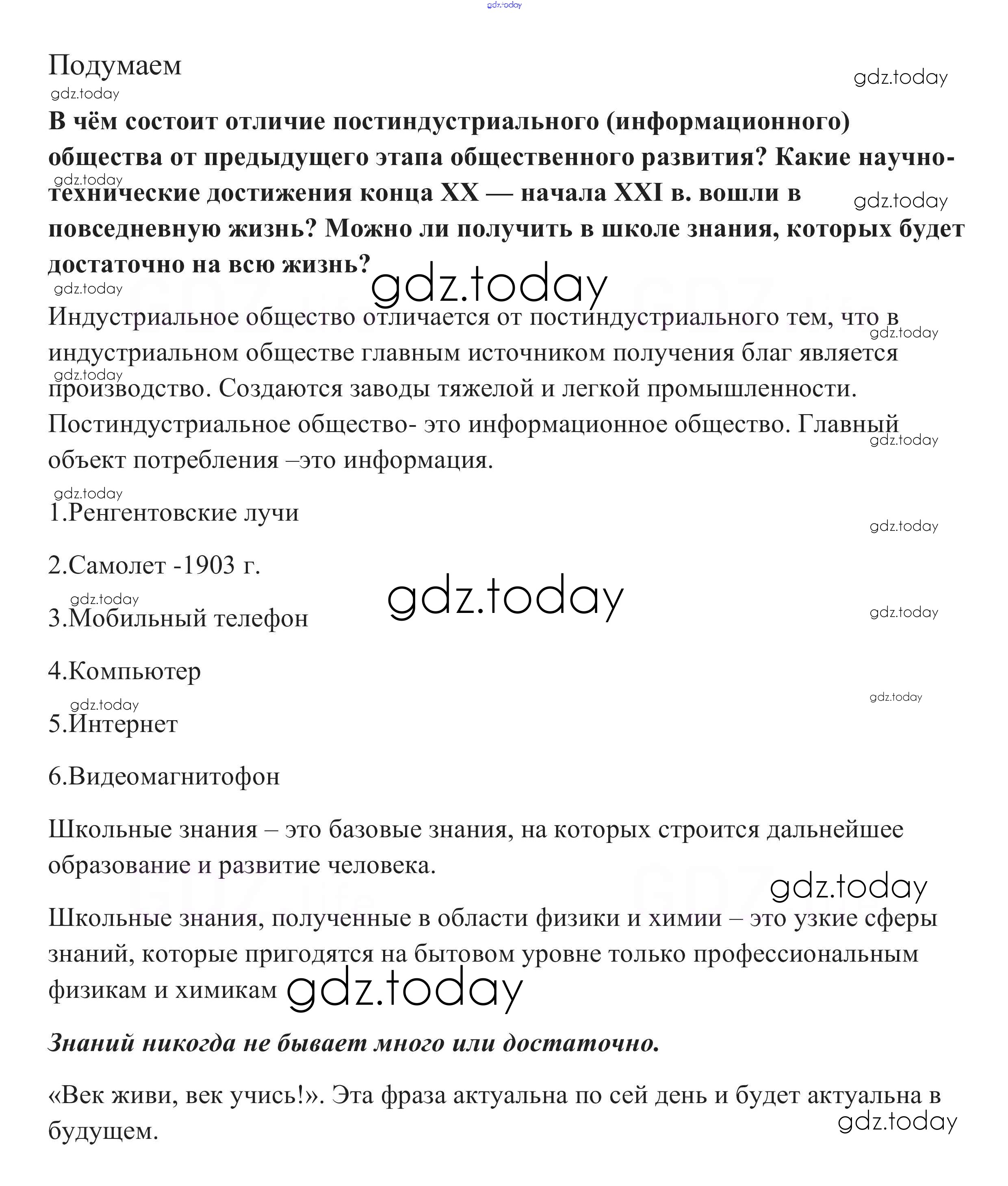 На страницах сайта gdz.today вы найдете учебный и вспомогательный материал, направленный на улучшения знаний школьной программы. ГДЗ - онлайн мир знаний Подумаем §10. Образование 1 Учебнику по Обществознанию для 8 класса Боголюбов, Городецкая Просвещение Академический школьный учебник 2014