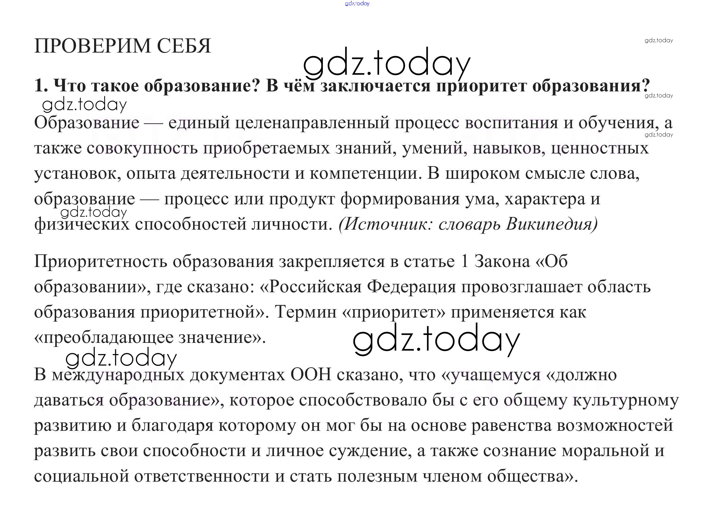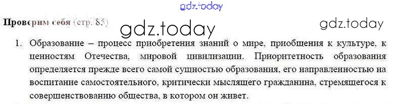 На страницах сайта gdz.today вы найдете учебный и вспомогательный материал, направленный на улучшения знаний школьной программы. ГДЗ - онлайн мир знаний Проверим себя §10. Образование 1 Учебнику по Обществознанию для 8 класса Боголюбов, Городецкая Просвещение Академический школьный учебник 2014