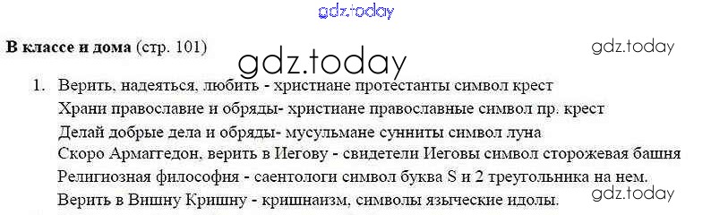 Ответы к В классе и дома §12. Религия как одна из форм культуры 1 Учебнику по Обществознанию для 8 класса Боголюбов, Городецкая Просвещение Академический школьный учебник 2014