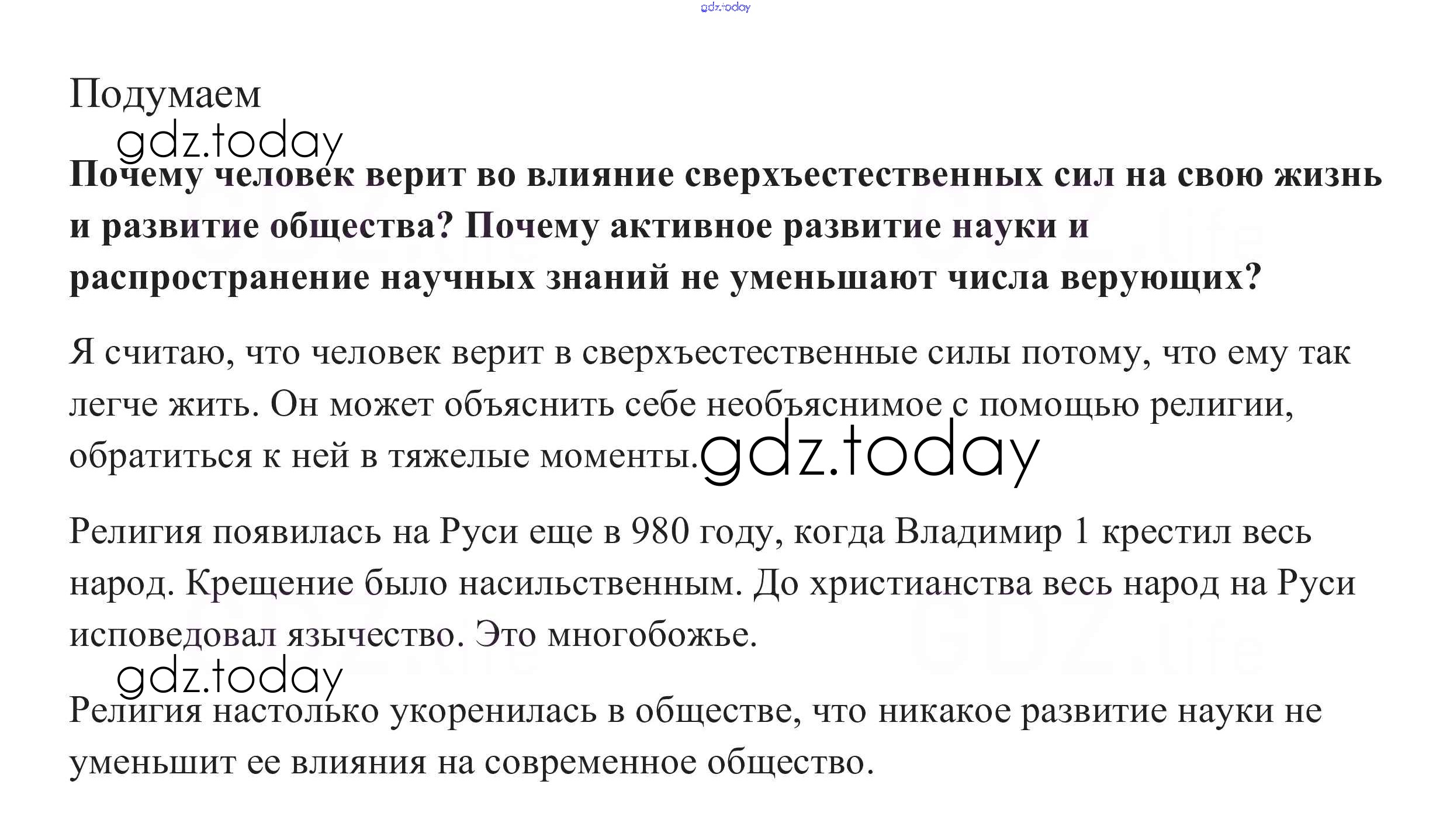 На страницах сайта gdz.today вы найдете учебный и вспомогательный материал, направленный на улучшения знаний школьной программы. ГДЗ - онлайн мир знаний Подумаем §12. Религия как одна из форм культуры 1 Учебнику по Обществознанию для 8 класса Боголюбов, Городецкая Просвещение Академический школьный учебник 2014