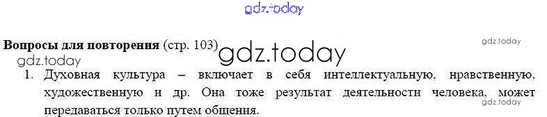 На страницах сайта gdz.today вы найдете учебный и вспомогательный материал, направленный на улучшения знаний школьной программы. ГДЗ - онлайн мир знаний Вопросы для повторения страница 102 Решение к главе 2. Сфера духовной культуры 1 Учебнику по Обществознанию для 8 класса Боголюбов, Городецкая Просвещение Академический школьный учебник 2014