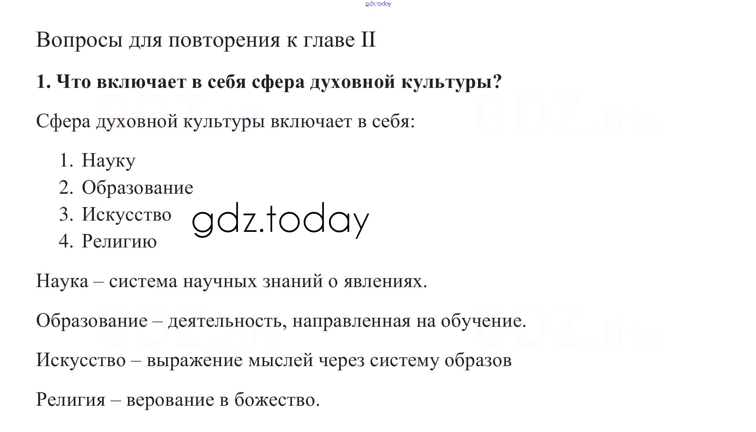 Ответы к Вопросы для повторения страница 102 Решение к главе 2. Сфера духовной культуры 1 Учебнику по Обществознанию для 8 класса Боголюбов, Городецкая Просвещение Академический школьный учебник 2014
