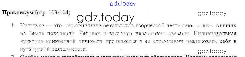 На страницах сайта gdz.today вы найдете учебный и вспомогательный материал, направленный на улучшения знаний школьной программы. ГДЗ - онлайн мир знаний Практикум к главе 2 страница 103 Решение к главе 2. Сфера духовной культуры 1 Учебнику по Обществознанию для 8 класса Боголюбов, Городецкая Просвещение Академический школьный учебник 2014