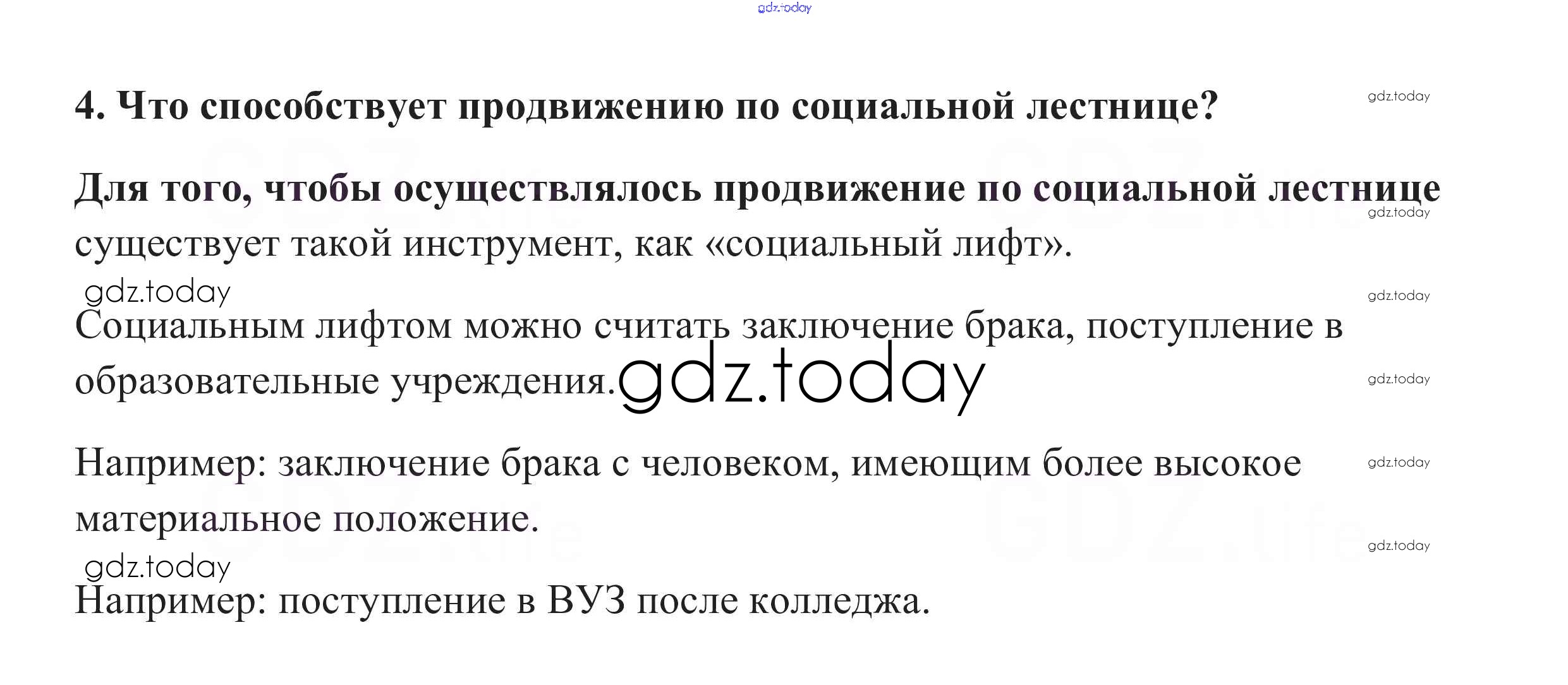 На страницах сайта gdz.today вы найдете учебный и вспомогательный материал, направленный на улучшения знаний школьной программы. ГДЗ - онлайн мир знаний Проверим себя §13. Социальная структура общества 4 Учебнику по Обществознанию для 8 класса Боголюбов, Городецкая Просвещение Академический школьный учебник 2014