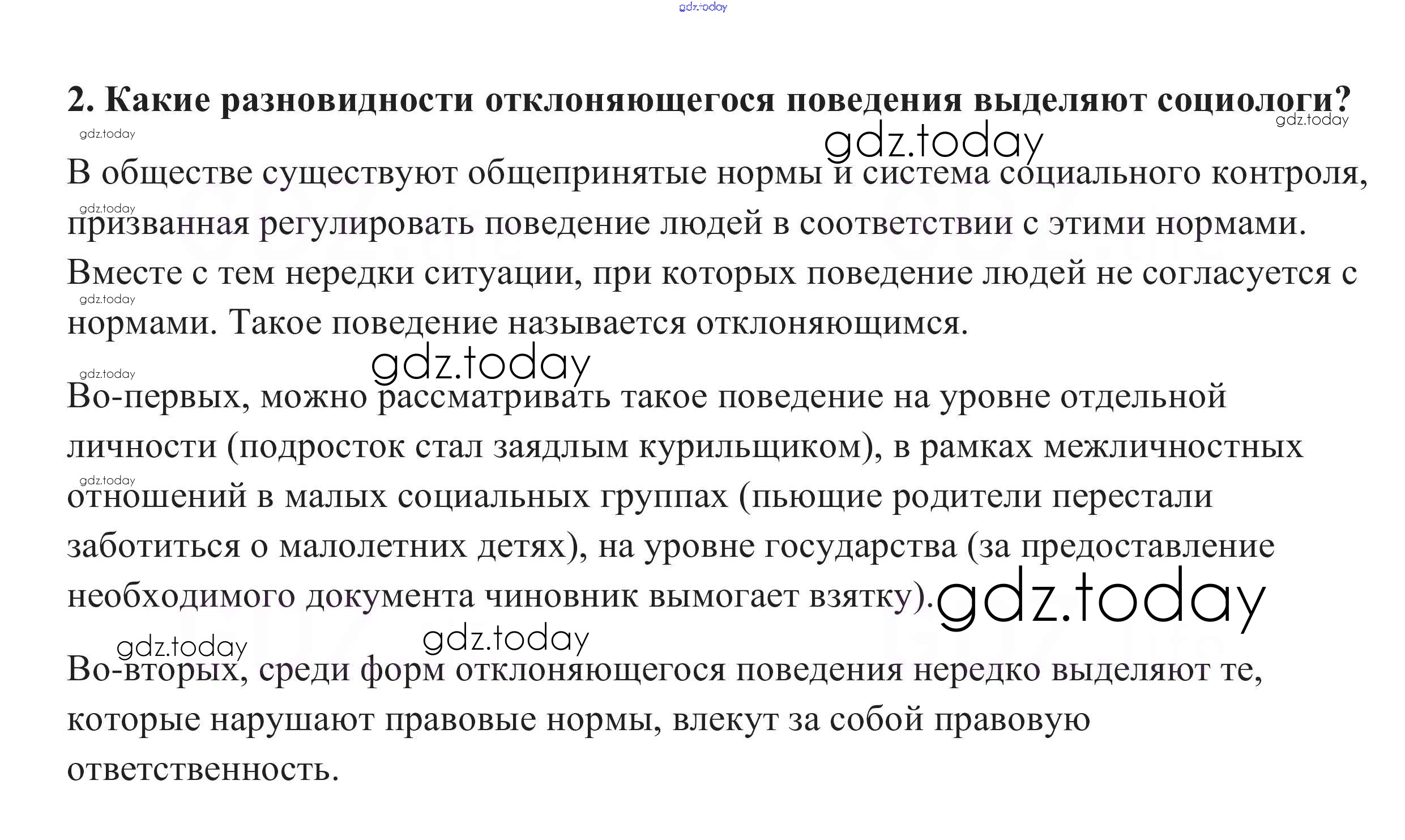 На страницах сайта gdz.today вы найдете учебный и вспомогательный материал, направленный на улучшения знаний школьной программы. ГДЗ - онлайн мир знаний Проверим себя §16. Отклоняющееся поведение 2 Учебнику по Обществознанию для 8 класса Боголюбов, Городецкая Просвещение Академический школьный учебник 2014