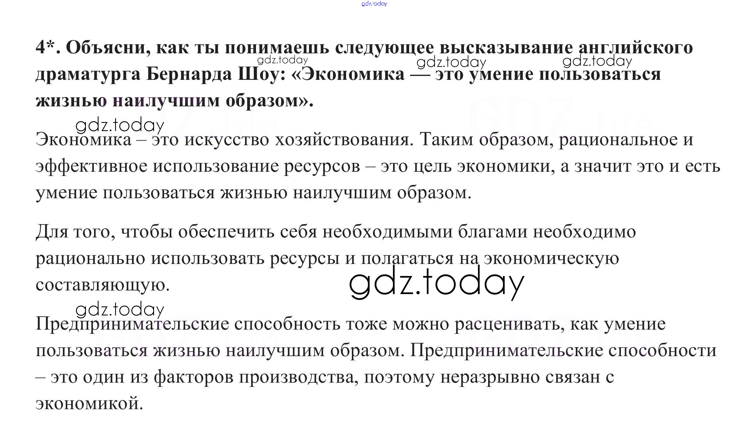На страницах сайта gdz.today вы найдете учебный и вспомогательный материал, направленный на улучшения знаний школьной программы. ГДЗ - онлайн мир знаний В классе и дома §17. Экономика и ее роль в жизни общества 4 Учебнику по Обществознанию для 8 класса Боголюбов, Городецкая Просвещение Академический школьный учебник 2014