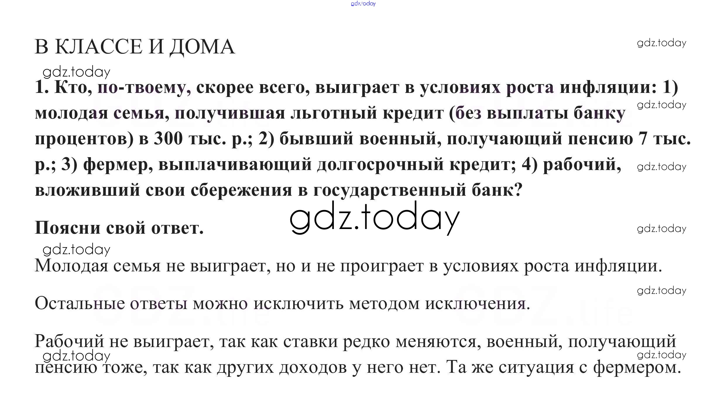 Ответы к В классе и дома §26. Инфляция и семейная экономика 1 Учебнику по Обществознанию для 8 класса Боголюбов, Городецкая Просвещение Академический школьный учебник 2014