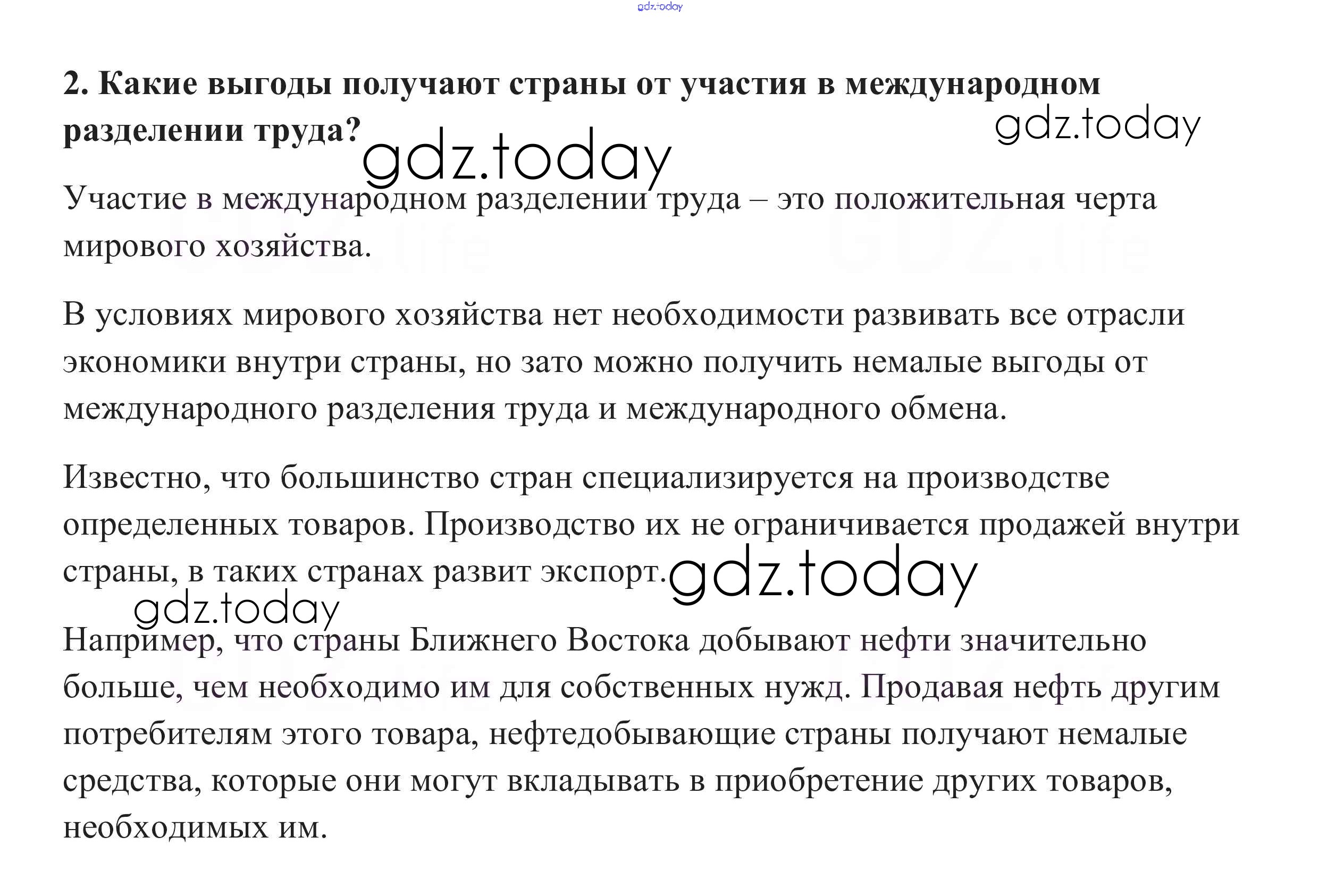 На страницах сайта gdz.today вы найдете учебный и вспомогательный материал, направленный на улучшения знаний школьной программы. ГДЗ - онлайн мир знаний Проверим себя §28. Мировое хозяйство и международная торговля 2 Учебнику по Обществознанию для 8 класса Боголюбов, Городецкая Просвещение Академический школьный учебник 2014