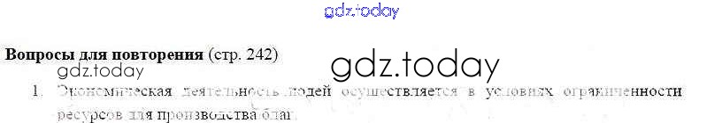 На страницах сайта gdz.today вы найдете учебный и вспомогательный материал, направленный на улучшения знаний школьной программы. ГДЗ - онлайн мир знаний Вопросы для повторения страница 242 Решение к главе 4. Экономика 1 Учебнику по Обществознанию для 8 класса Боголюбов, Городецкая Просвещение Академический школьный учебник 2014