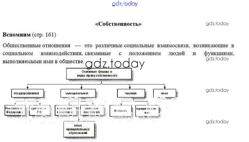 На страницах сайта gdz.today вы найдете учебный и вспомогательный материал, направленный на улучшения знаний школьной программы. ГДЗ - онлайн мир знаний Вспомним §19. Собственность 1 Учебнику по Обществознанию для 8 класса Боголюбов, Городецкая Просвещение Академический школьный учебник 2014