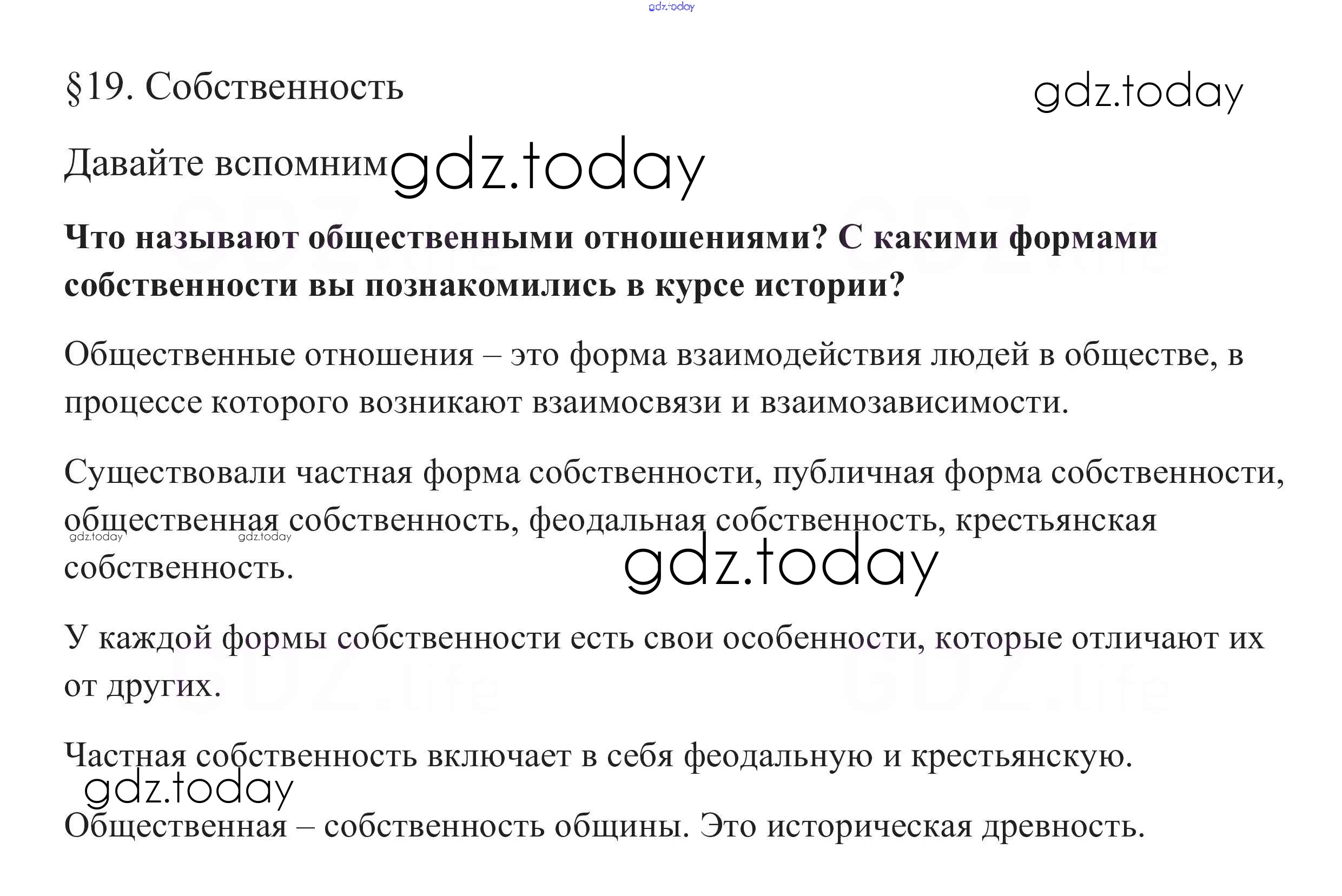 Ответы к Вспомним §19. Собственность 1 Учебнику по Обществознанию для 8 класса Боголюбов, Городецкая Просвещение Академический школьный учебник 2014