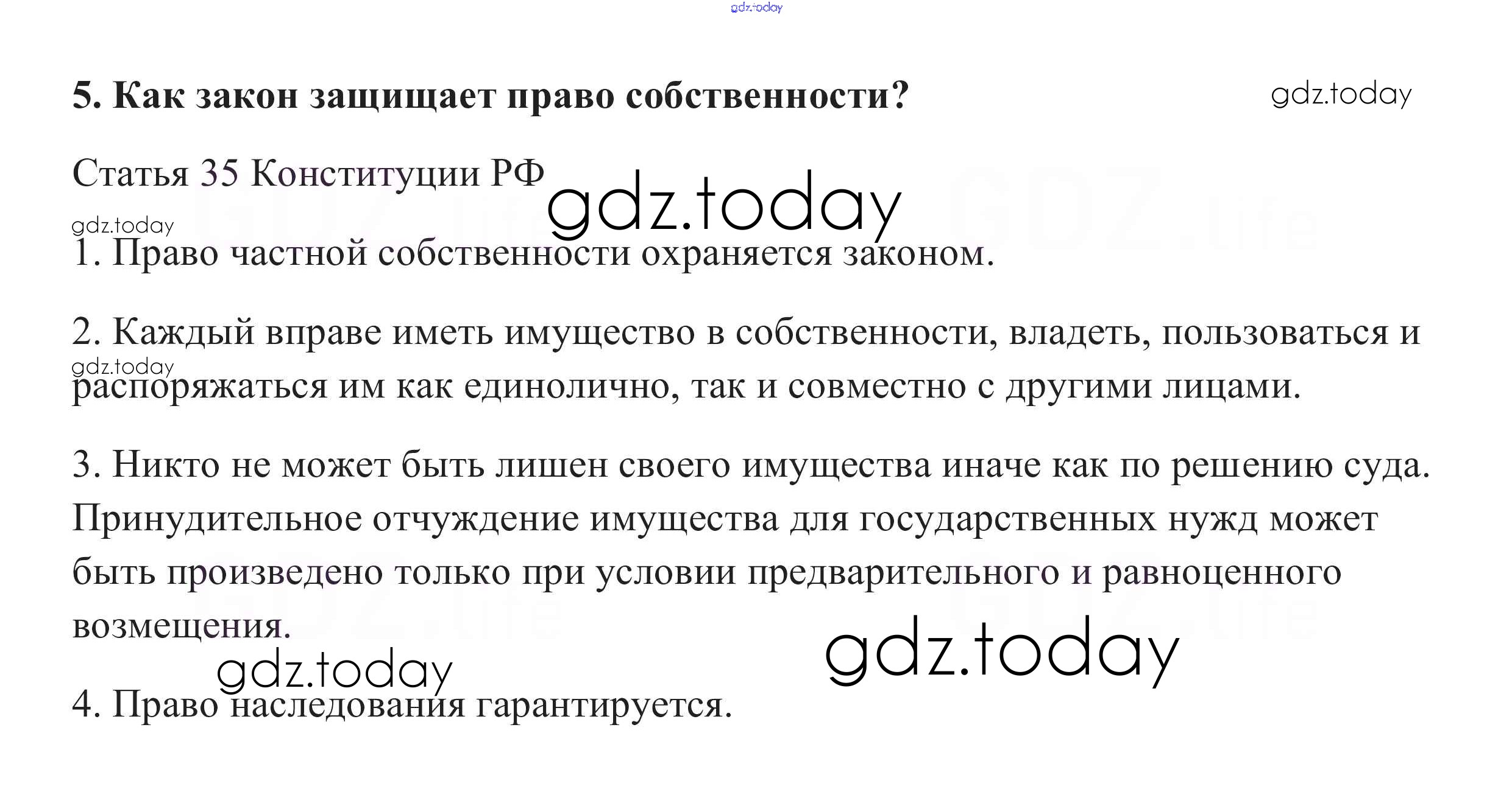 На страницах сайта gdz.today вы найдете учебный и вспомогательный материал, направленный на улучшения знаний школьной программы. ГДЗ - онлайн мир знаний Проверим себя §19. Собственность 5 Учебнику по Обществознанию для 8 класса Боголюбов, Городецкая Просвещение Академический школьный учебник 2014
