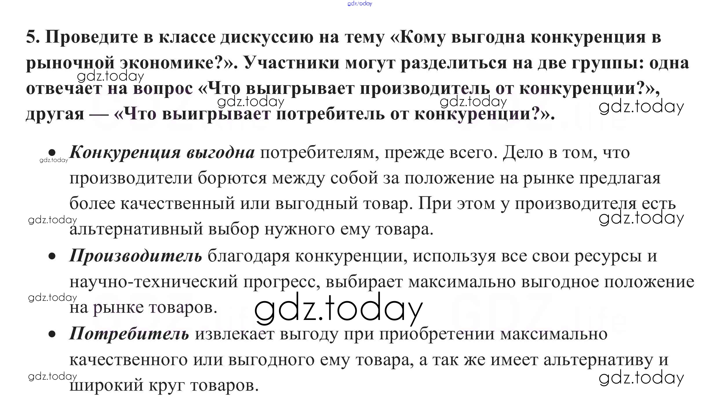 На страницах сайта gdz.today вы найдете учебный и вспомогательный материал, направленный на улучшения знаний школьной программы. ГДЗ - онлайн мир знаний В классе и дома §20. Рыночная экономика 5 Учебнику по Обществознанию для 8 класса Боголюбов, Городецкая Просвещение Академический школьный учебник 2014