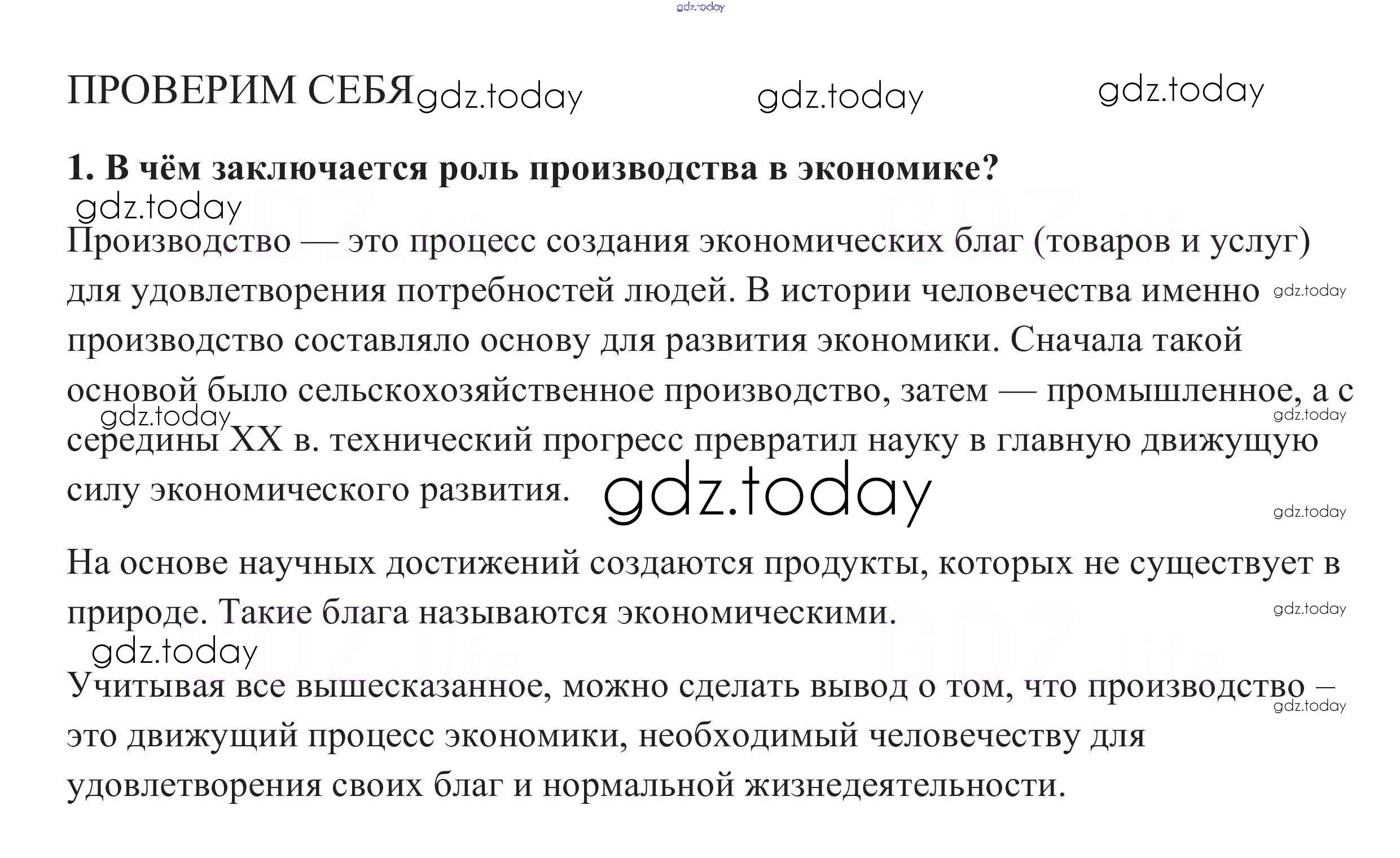 На страницах сайта gdz.today вы найдете учебный и вспомогательный материал, направленный на улучшения знаний школьной программы. ГДЗ - онлайн мир знаний Проверим себя §21. Производство - основа экономики 1 Учебнику по Обществознанию для 8 класса Боголюбов, Городецкая Просвещение Академический школьный учебник 2014
