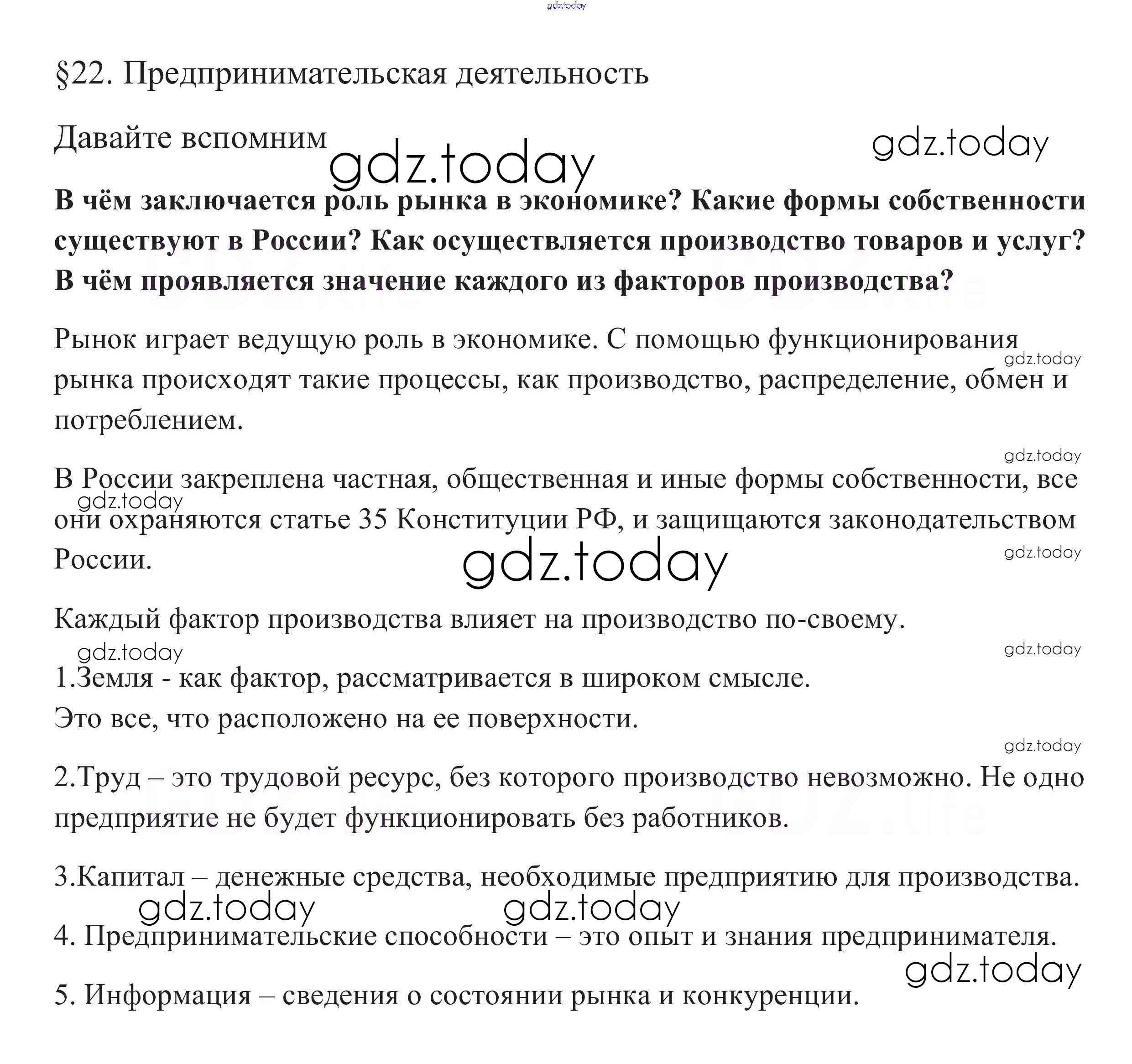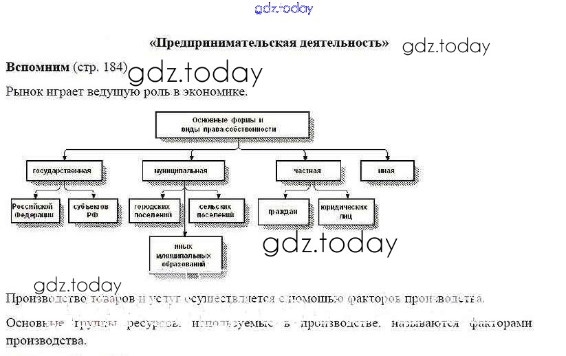 На страницах сайта gdz.today вы найдете учебный и вспомогательный материал, направленный на улучшения знаний школьной программы. ГДЗ - онлайн мир знаний Вспомним §22. Предпринимательская деятельность 1 Учебнику по Обществознанию для 8 класса Боголюбов, Городецкая Просвещение Академический школьный учебник 2014