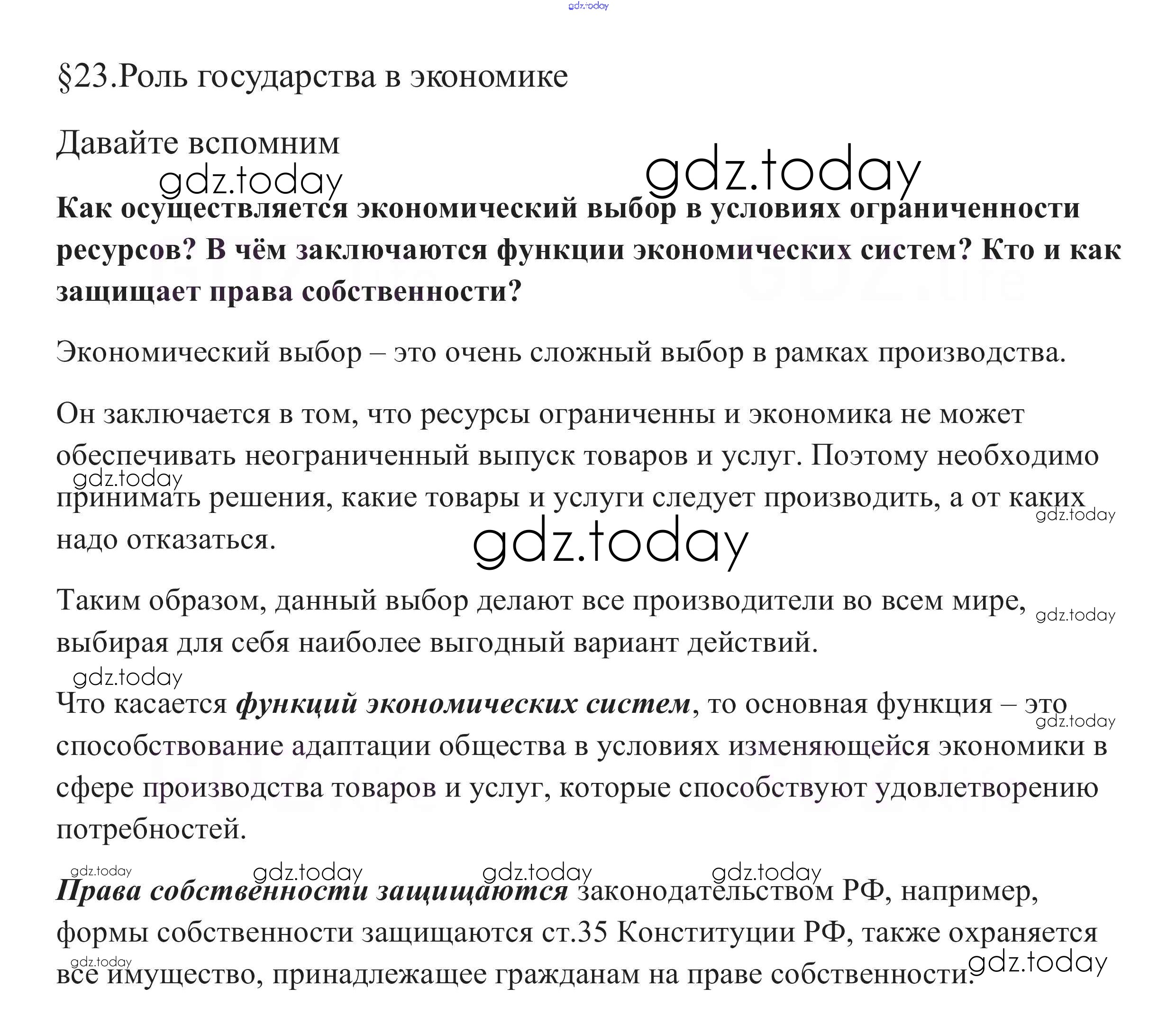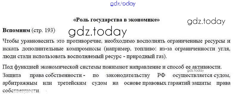 На страницах сайта gdz.today вы найдете учебный и вспомогательный материал, направленный на улучшения знаний школьной программы. ГДЗ - онлайн мир знаний Вспомним §23. Роль государства в экономике 1 Учебнику по Обществознанию для 8 класса Боголюбов, Городецкая Просвещение Академический школьный учебник 2014