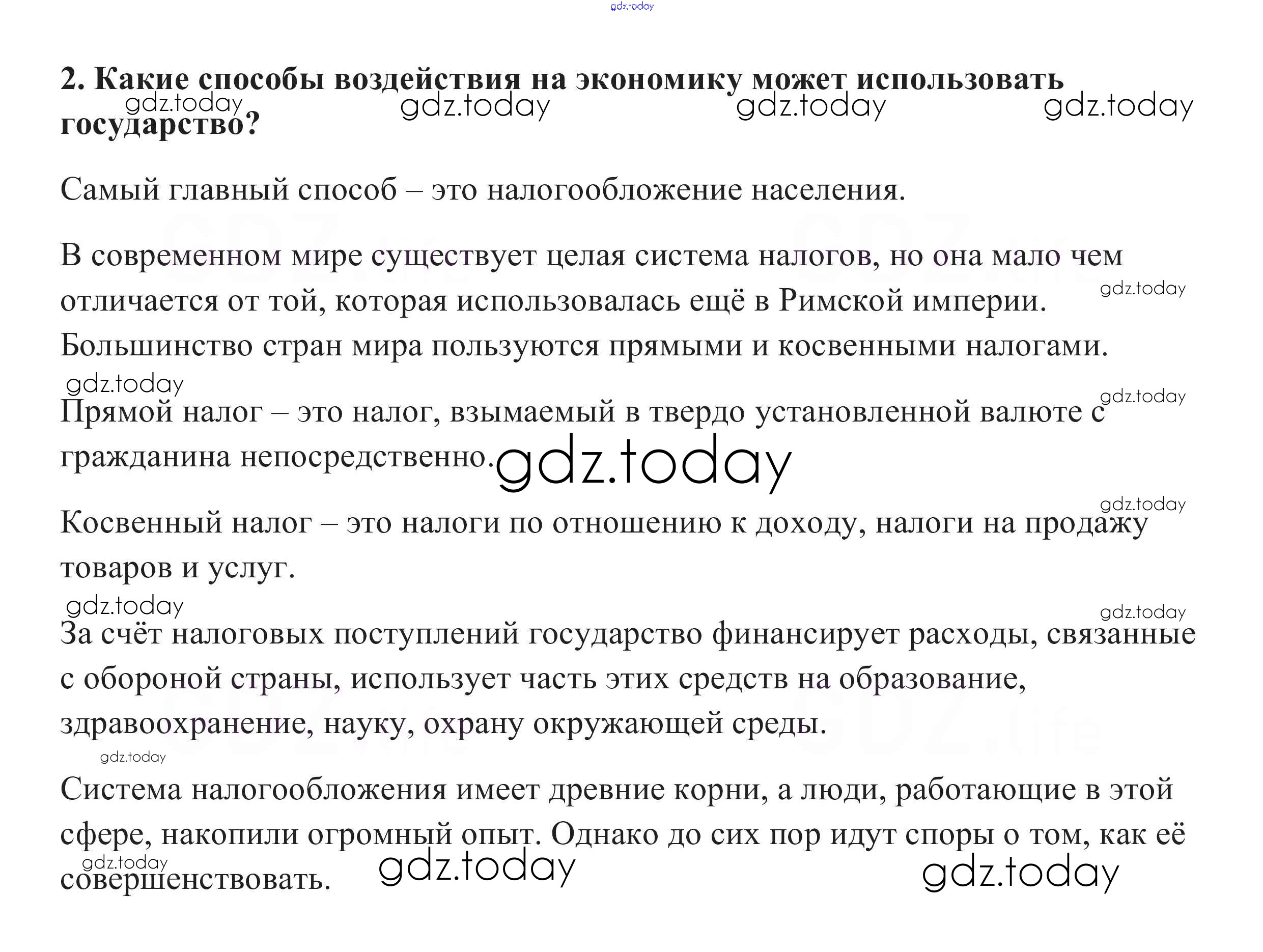 На страницах сайта gdz.today вы найдете учебный и вспомогательный материал, направленный на улучшения знаний школьной программы. ГДЗ - онлайн мир знаний Проверим себя §23. Роль государства в экономике 2 Учебнику по Обществознанию для 8 класса Боголюбов, Городецкая Просвещение Академический школьный учебник 2014