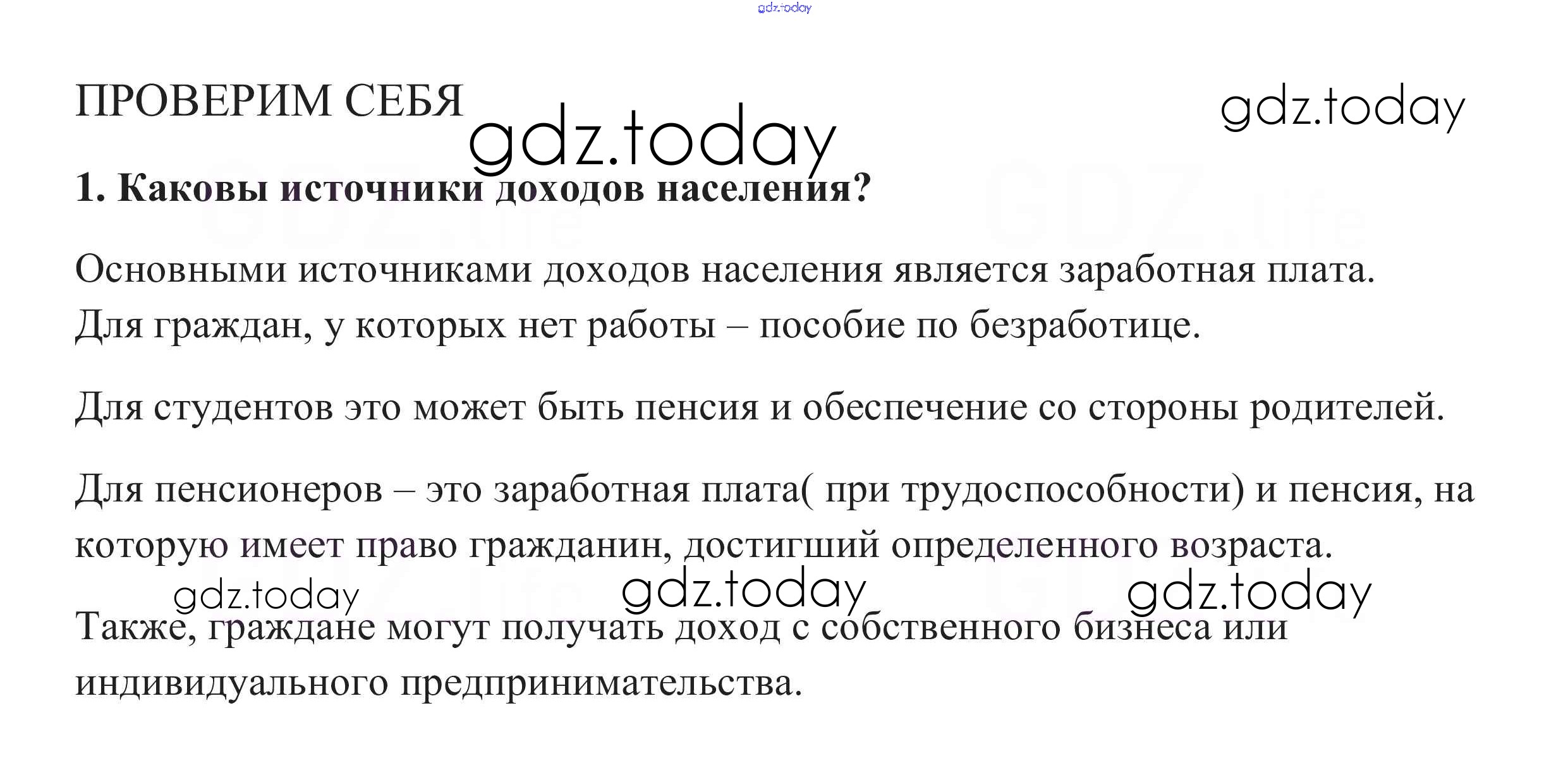 На страницах сайта gdz.today вы найдете учебный и вспомогательный материал, направленный на улучшения знаний школьной программы. ГДЗ - онлайн мир знаний Проверим себя §24. Распределение доходов 1 Учебнику по Обществознанию для 8 класса Боголюбов, Городецкая Просвещение Академический школьный учебник 2014