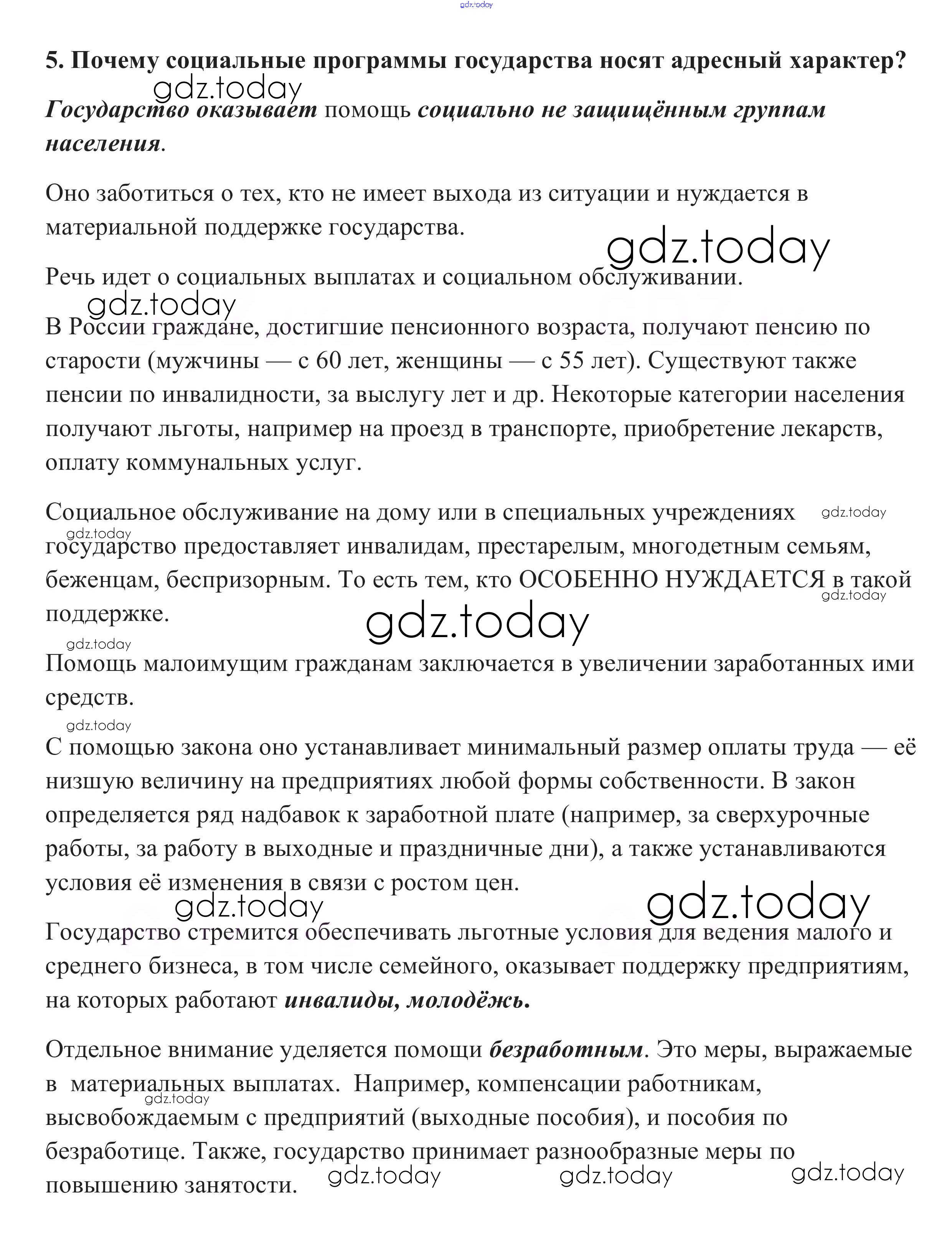 На страницах сайта gdz.today вы найдете учебный и вспомогательный материал, направленный на улучшения знаний школьной программы. ГДЗ - онлайн мир знаний Проверим себя §24. Распределение доходов 5 Учебнику по Обществознанию для 8 класса Боголюбов, Городецкая Просвещение Академический школьный учебник 2014