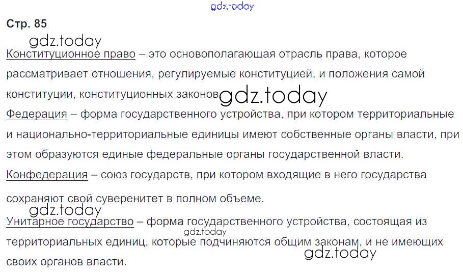 На страницах сайта gdz.today вы найдете учебный и вспомогательный материал, направленный на улучшения знаний школьной программы. ГДЗ - онлайн мир знаний Решение. Страницы 85 Рабочей тетради по Обществознанию для 8 класса Федорова Дрофа Вертикаль 2019