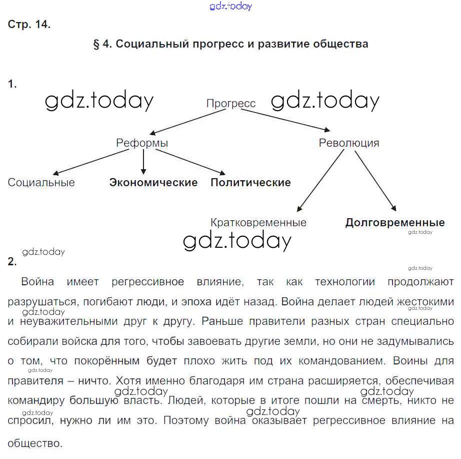 На страницах сайта gdz.today вы найдете учебный и вспомогательный материал, направленный на улучшения знаний школьной программы. ГДЗ - онлайн мир знаний Страницы (решение) 14 Рабочей тетради по Обществознанию для 8 класса Хромова Русское слово 2015