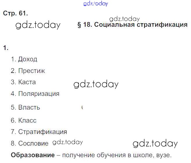 На страницах сайта gdz.today вы найдете учебный и вспомогательный материал, направленный на улучшения знаний школьной программы. ГДЗ - онлайн мир знаний Страницы (решение) 61 Рабочей тетради по Обществознанию для 8 класса Хромова Русское слово 2015