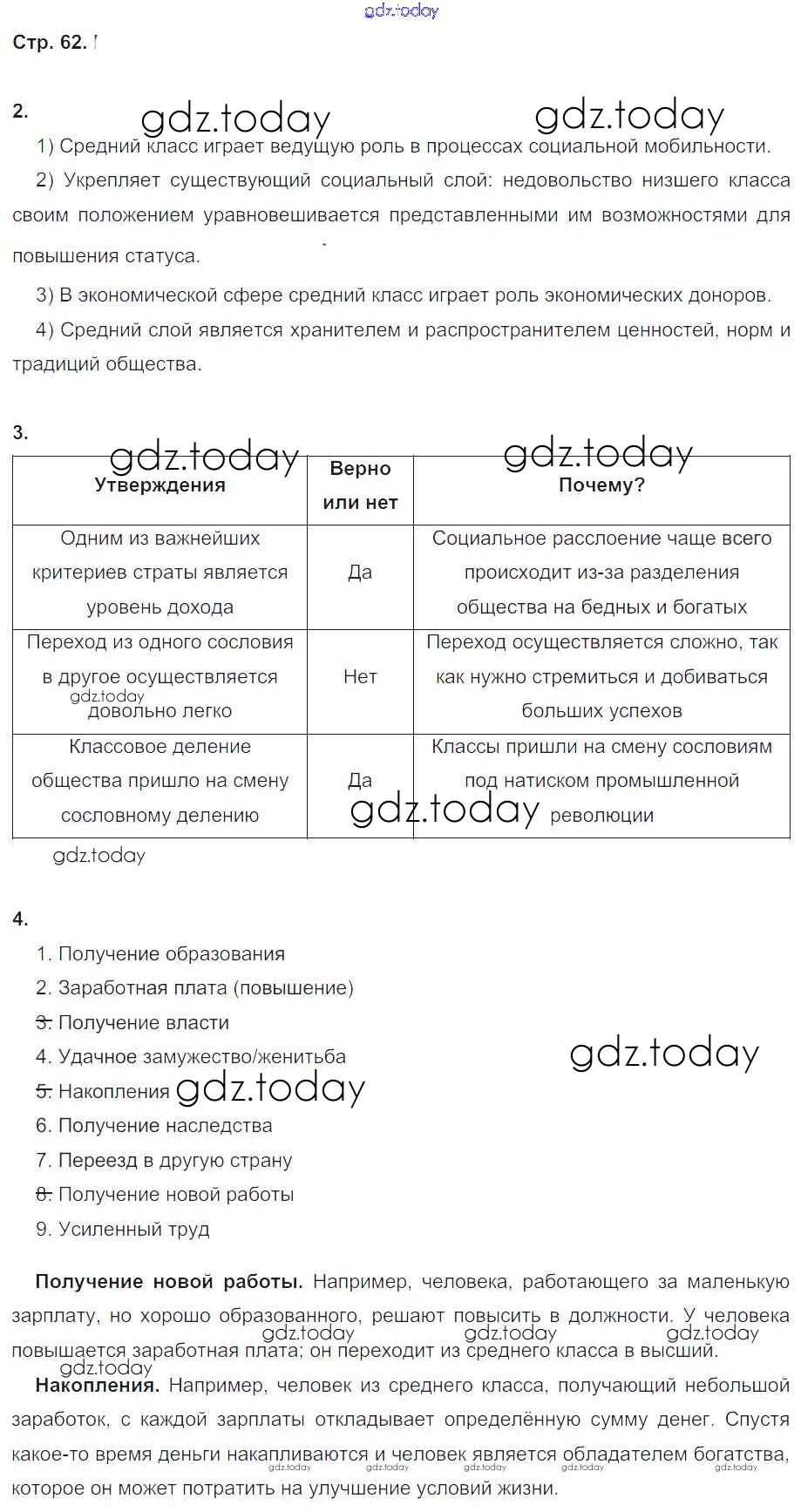 Ответы к Страницы (решение) 62 Рабочей тетради по Обществознанию для 8 класса Хромова Русское слово 2015