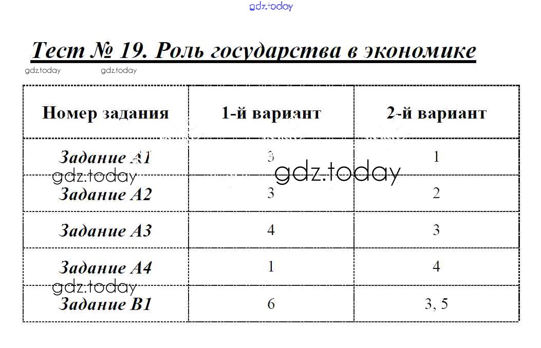 На страницах сайта gdz.today вы найдете учебный и вспомогательный материал, направленный на улучшения знаний школьной программы. ГДЗ - онлайн мир знаний Решение к тестам Тест №19. Роль государства в экономике Контрольно-измерительным материалам (КИМ) по Обществознанию для 8 класса Поздеев ВАКО 2017