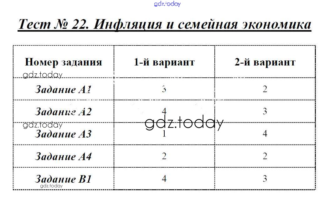 На страницах сайта gdz.today вы найдете учебный и вспомогательный материал, направленный на улучшения знаний школьной программы. ГДЗ - онлайн мир знаний Решение к тестам Тест №22. Инфляция и семейная экономика Контрольно-измерительным материалам (КИМ) по Обществознанию для 8 класса Поздеев ВАКО 2017