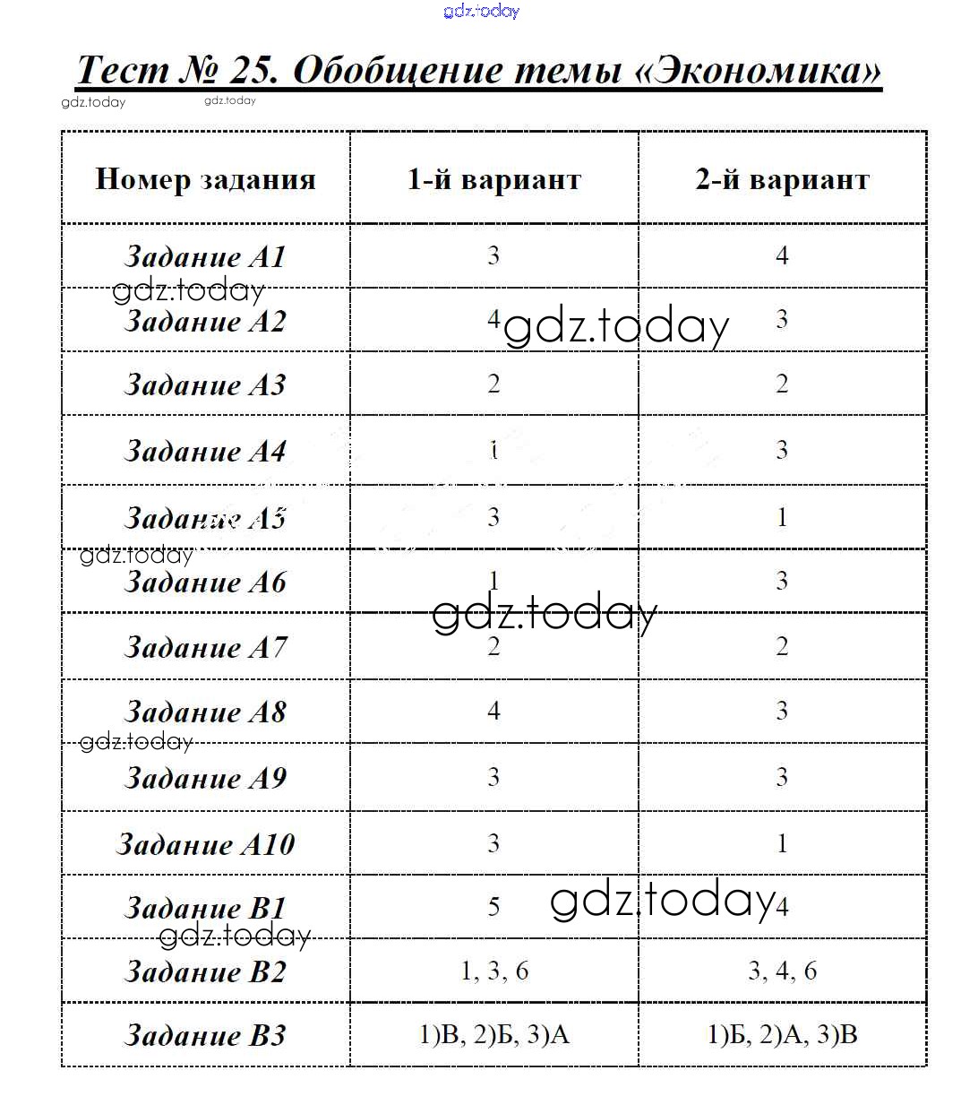 На страницах сайта gdz.today вы найдете учебный и вспомогательный материал, направленный на улучшения знаний школьной программы. ГДЗ - онлайн мир знаний Решение к тестам Тест №25. Обобщение темы - Экономика Контрольно-измерительным материалам (КИМ) по Обществознанию для 8 класса Поздеев ВАКО 2017