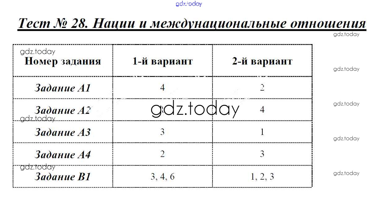 На страницах сайта gdz.today вы найдете учебный и вспомогательный материал, направленный на улучшения знаний школьной программы. ГДЗ - онлайн мир знаний Решение к тестам Тест №28. Нации и межнациональные отношения Контрольно-измерительным материалам (КИМ) по Обществознанию для 8 класса Поздеев ВАКО 2017